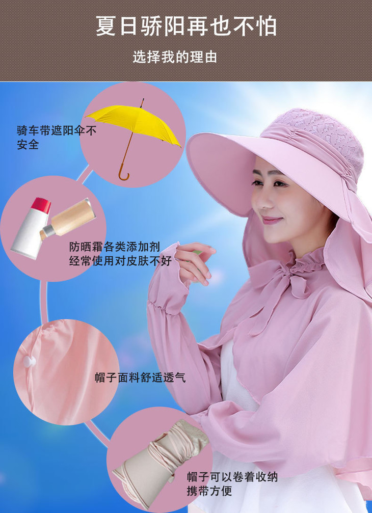 防紫外线仙女 户外出游百搭太阳帽遮脸披肩套装