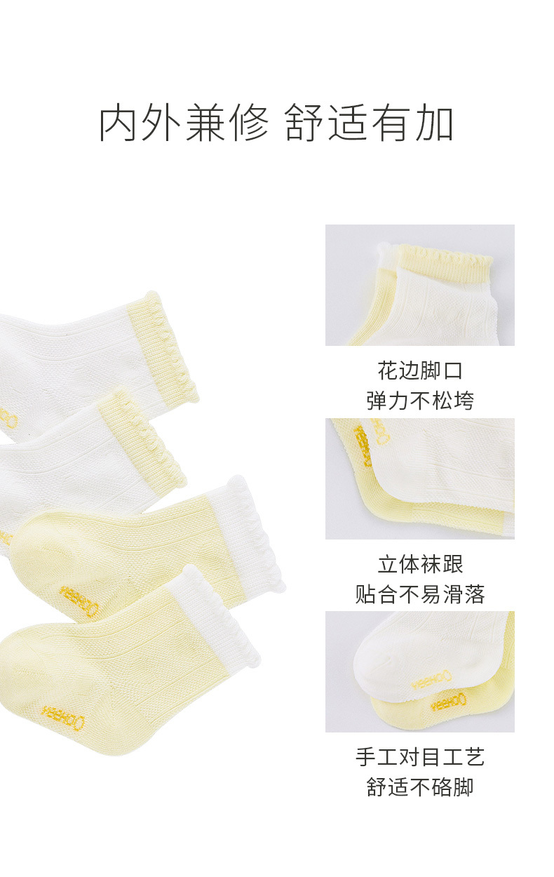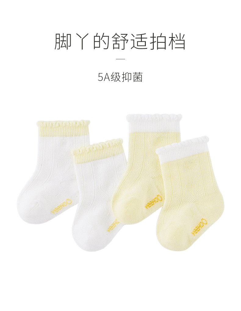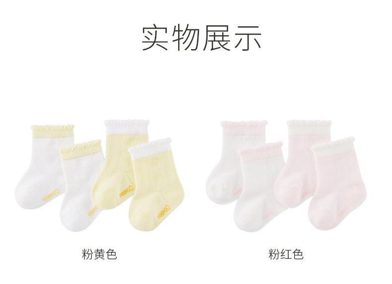 英氏婴儿袜子宝宝四季袜男童女童春夏透气舒适款2双装
