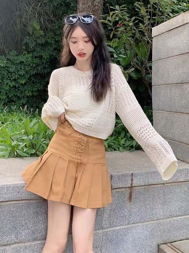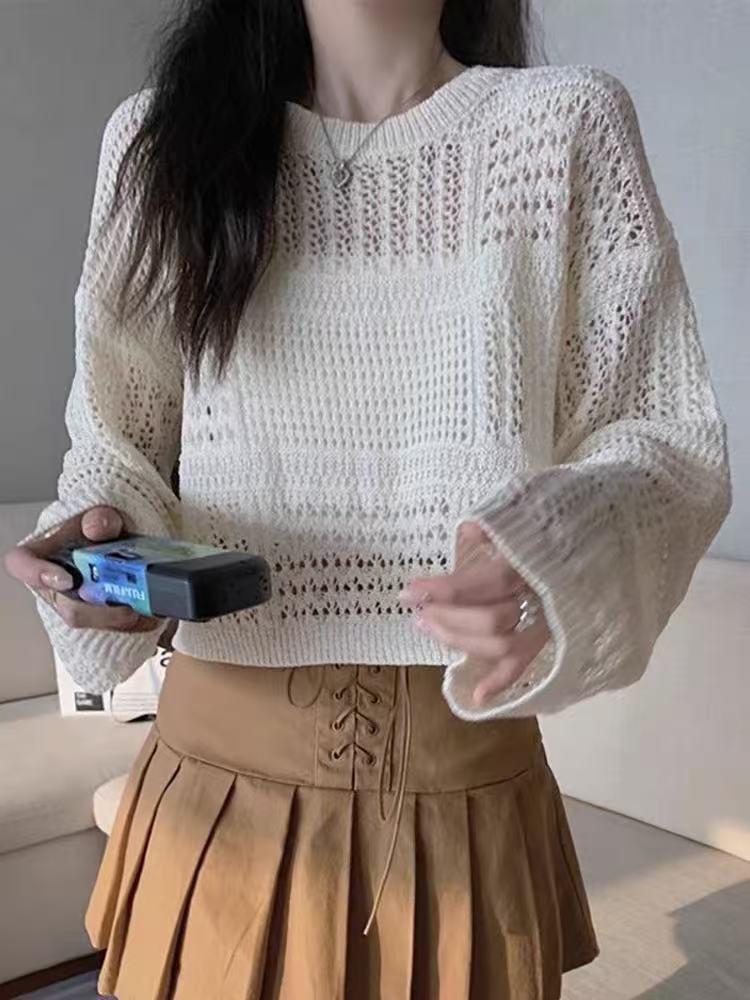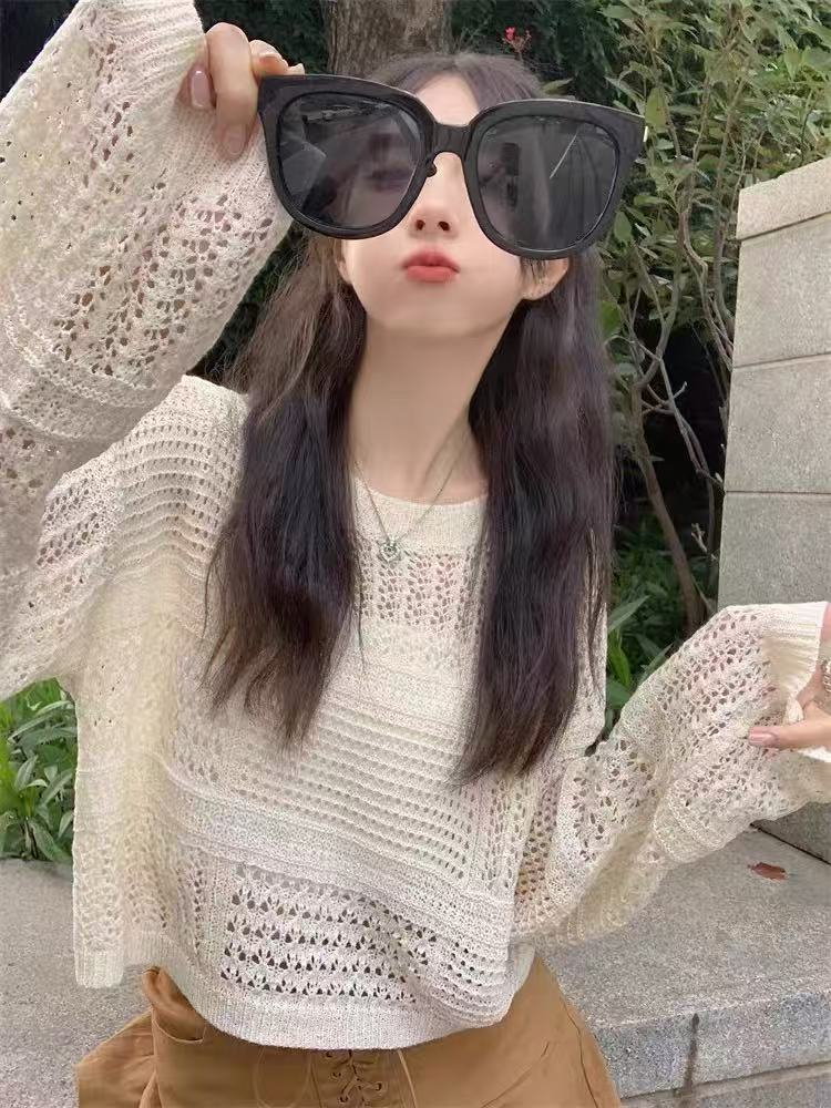 【孤品捡漏】G115米色针织镂空罩衫针织衫-喜出