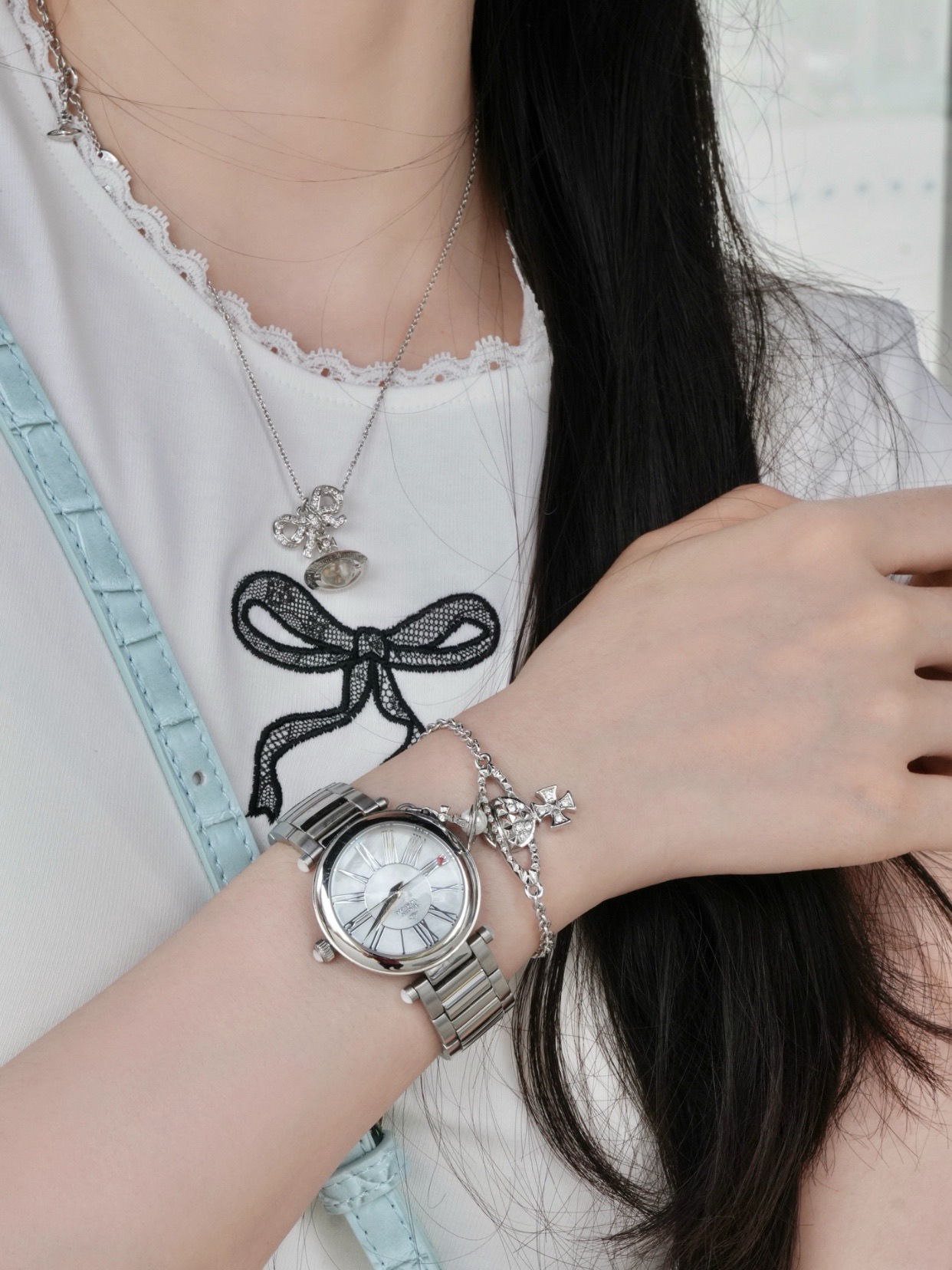 贝母的温柔、精钢的耐造、加上西太后标志性的土星元素,经典又有态度。平时上班戴不扎眼还显品味,周末出去玩不用想搭配,随手一套就很出片。不管是给自己买个小礼物,还是送闺蜜都很ok,推荐推荐!