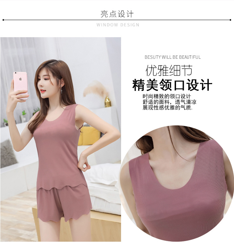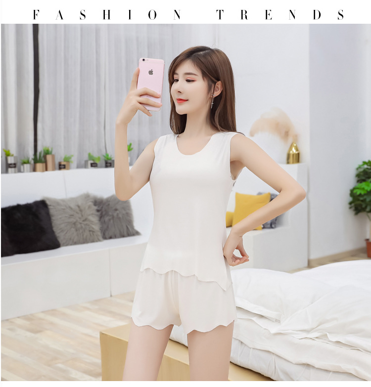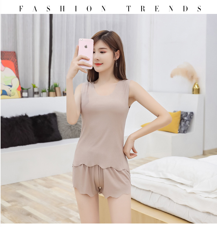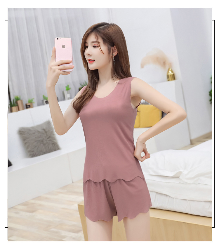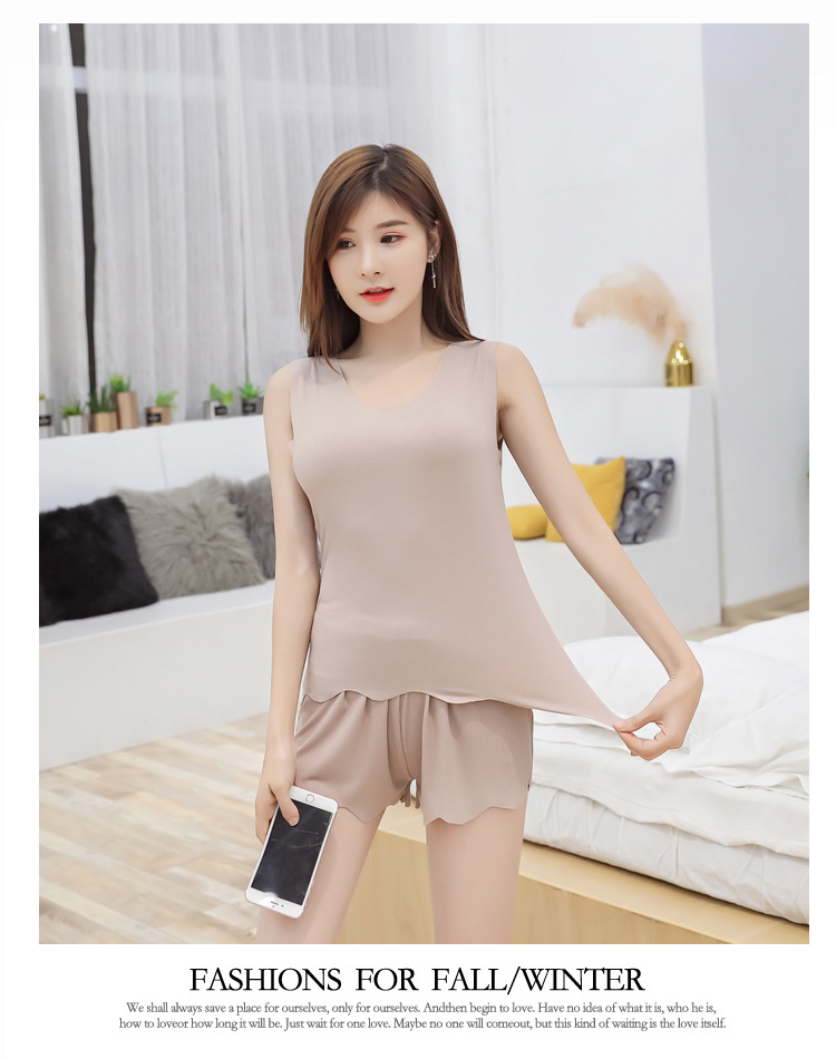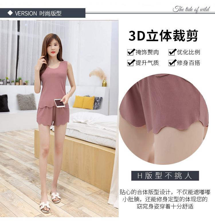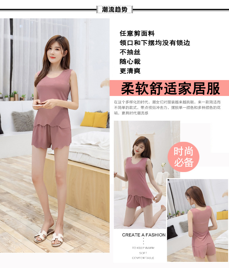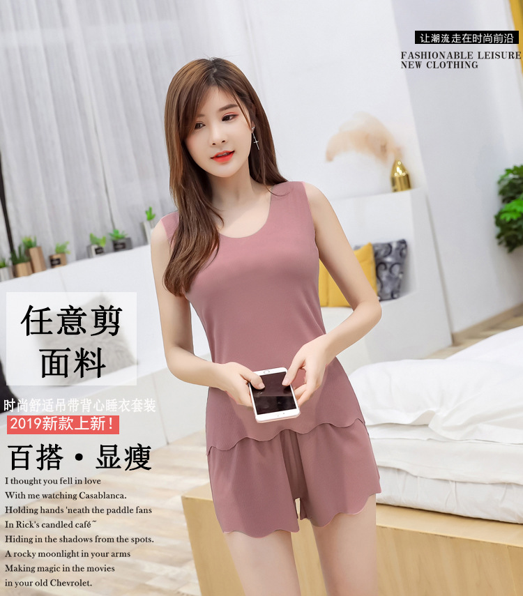 春夏背心两件套纯棉随心裁简约睡衣家居服 TZW
