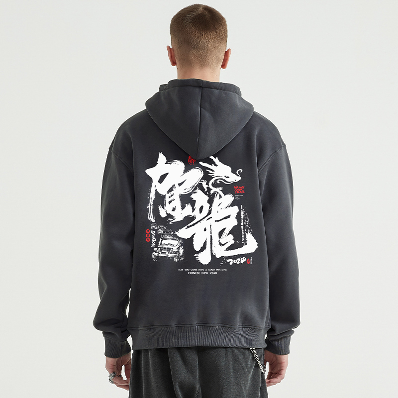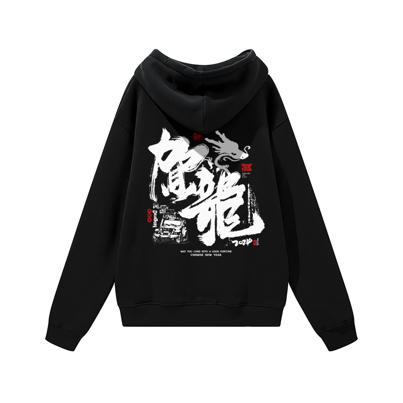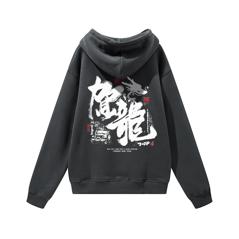 自由基地2024春季新款宽松抓绒卫衣青年潮流毛笔字越野设计图案款 NMT-2099