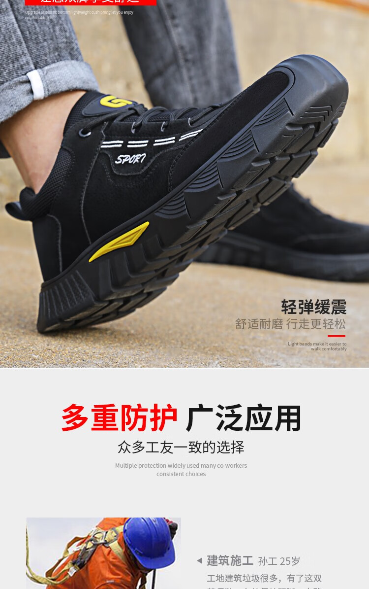 新款劳保鞋男防砸防刺钢包头四季款耐磨橡胶底舒适透气安全鞋工作鞋