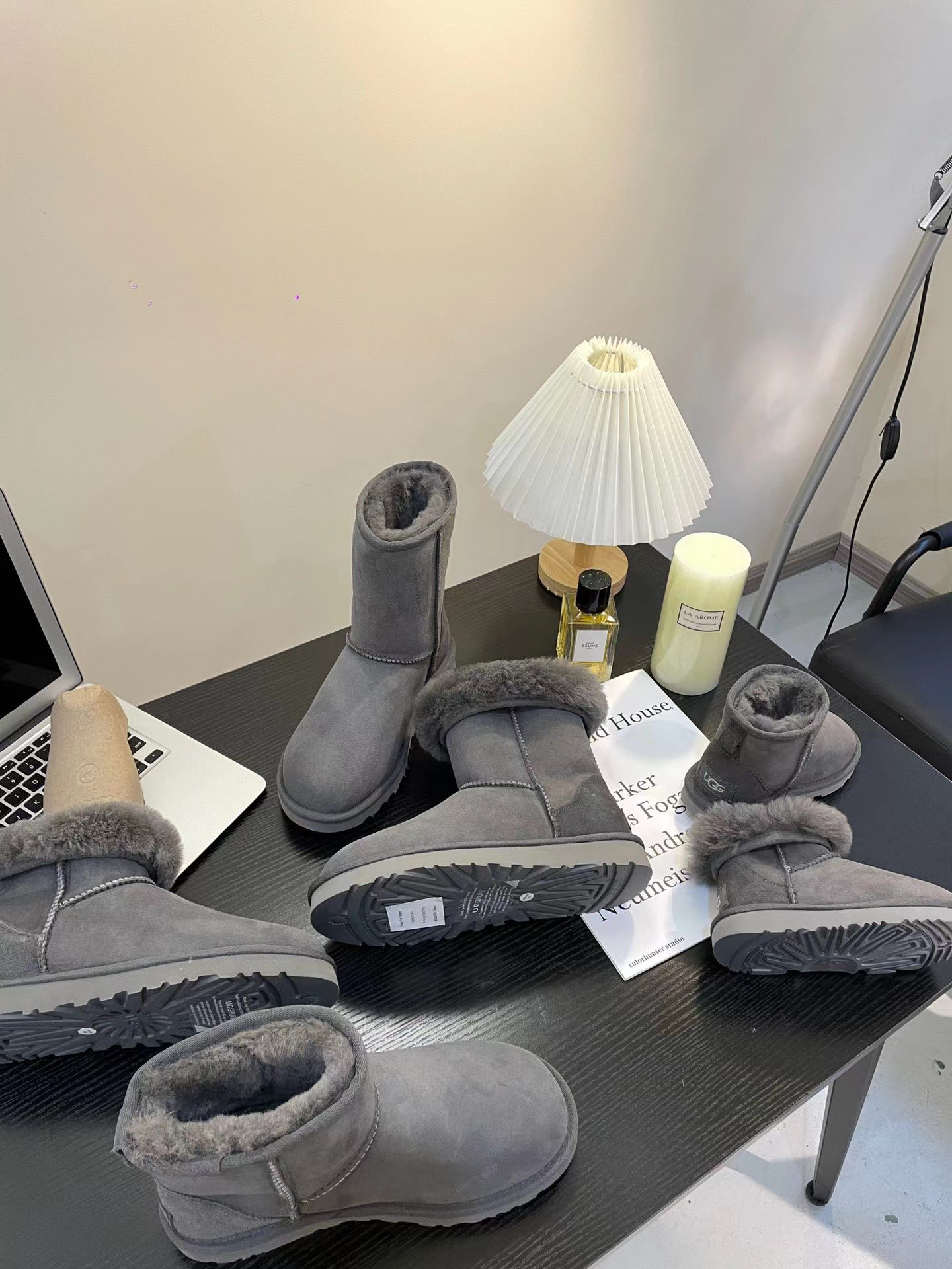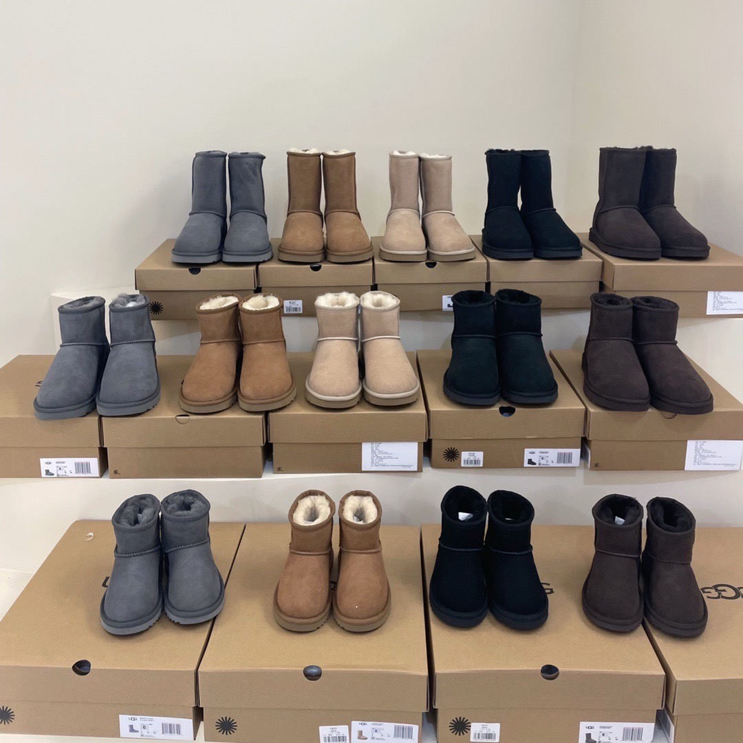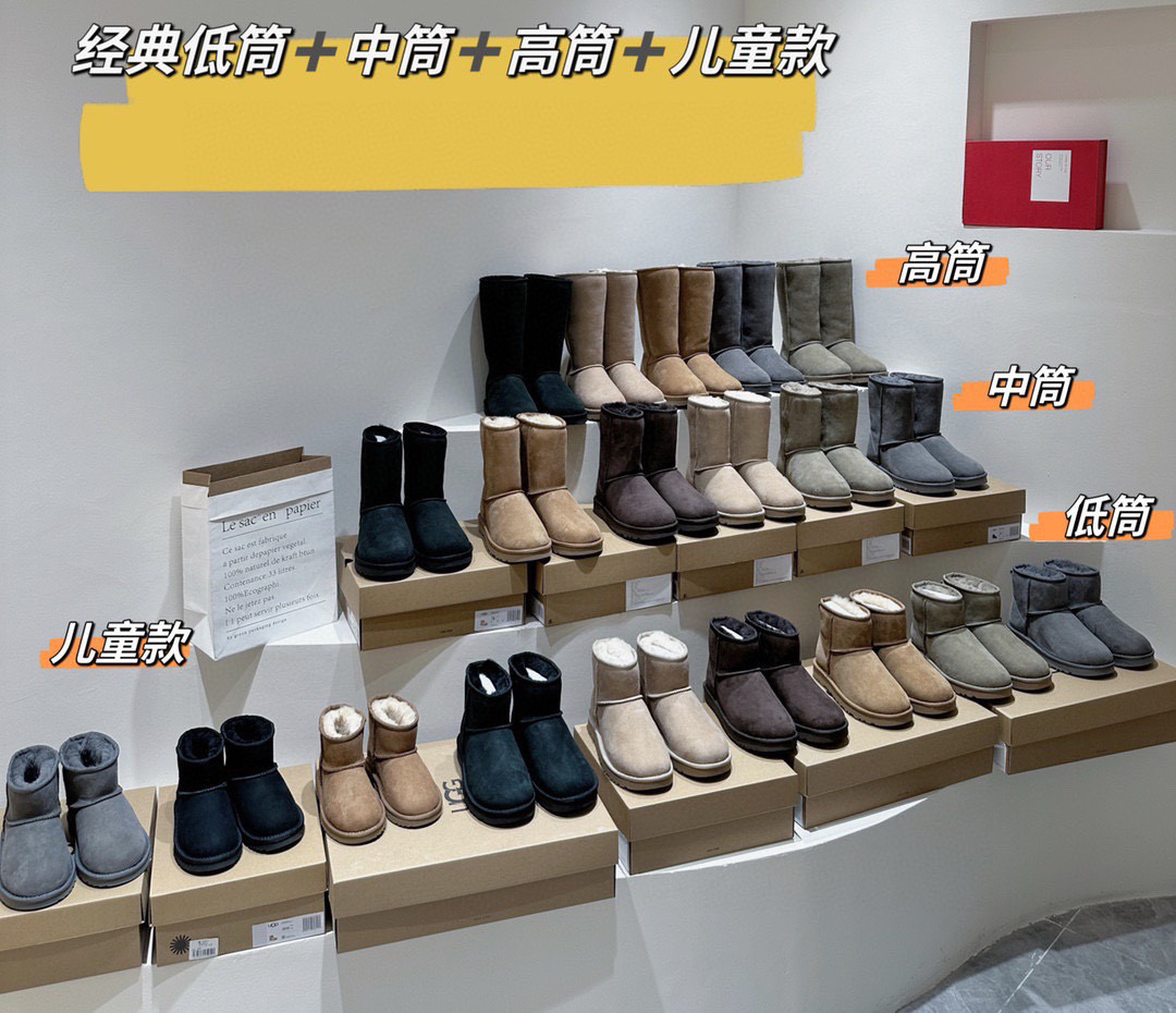 这款是Ugg家的经典系列了 每年发售量最大的就是这款了 还有儿童款 一起搞起来✊来吧 先看中筒实拍 中筒也是最适合冬天的筒高 6色 图 2 3是新加的配色羚羊棕 𝐮𝐠𝐠专属配色 外面买不到