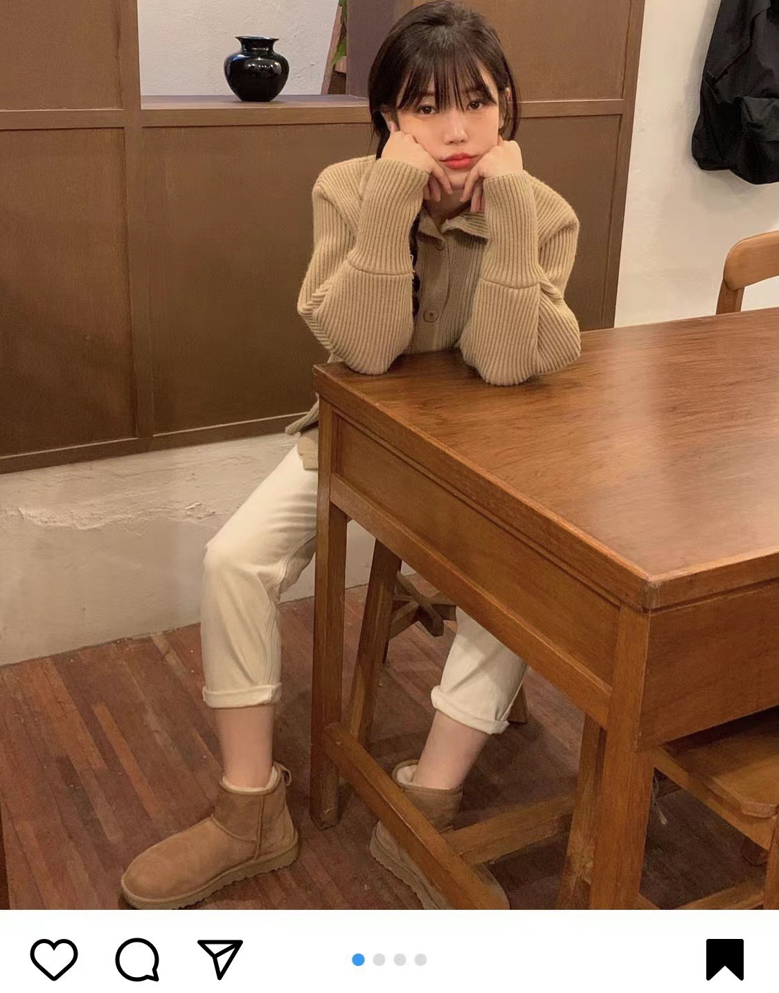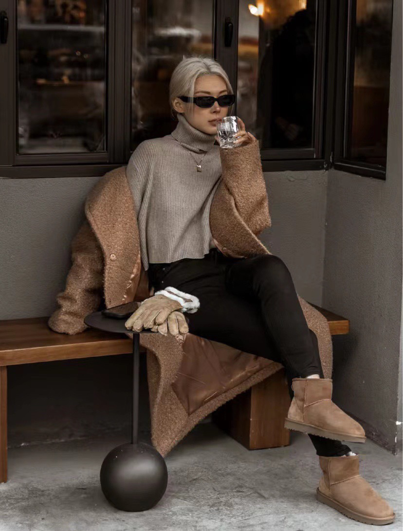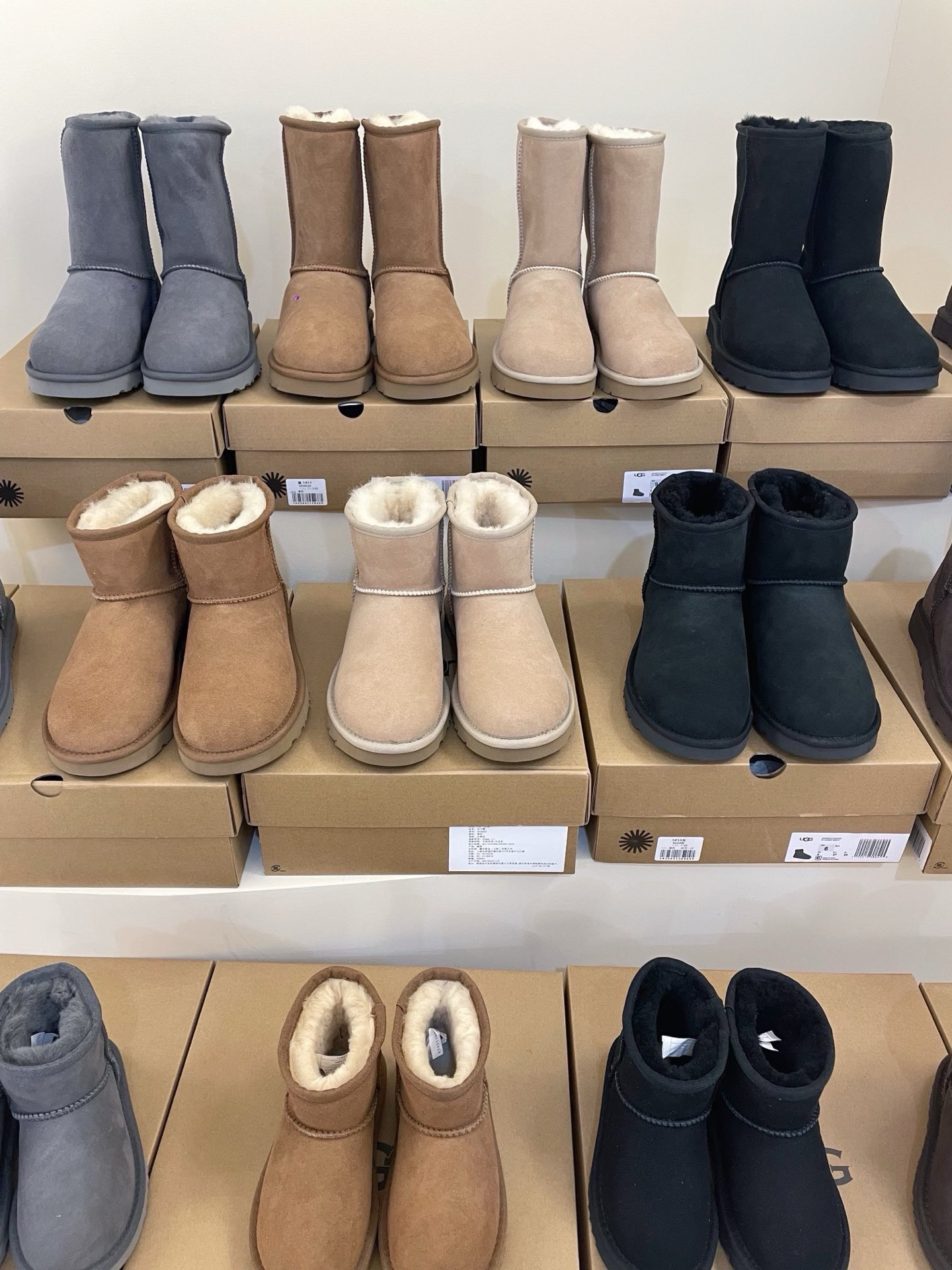 这款是Ugg家的经典系列了 每年发售量最大的就是这款了 还有儿童款 一起搞起来✊来吧 先看中筒实拍 中筒也是最适合冬天的筒高 6色 图 2 3是新加的配色羚羊棕 𝐮𝐠𝐠专属配色 外面买不到