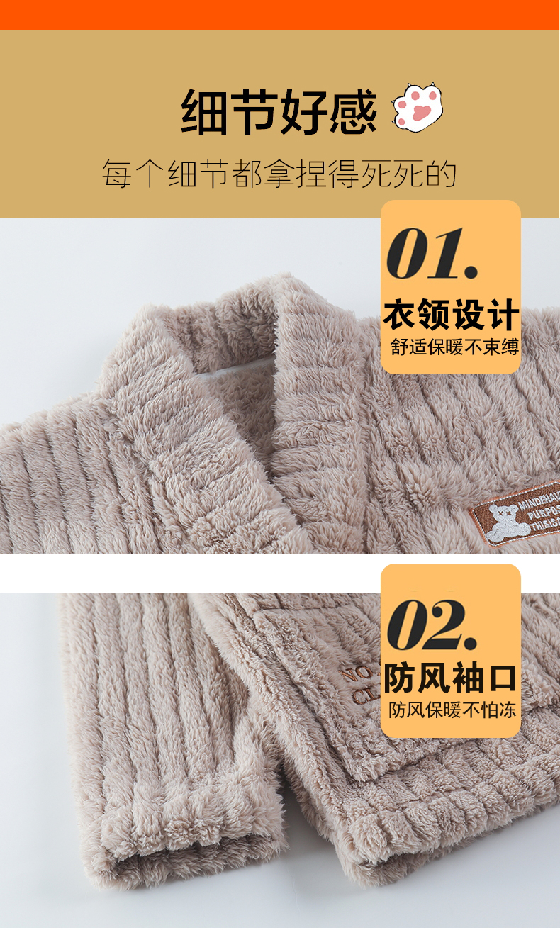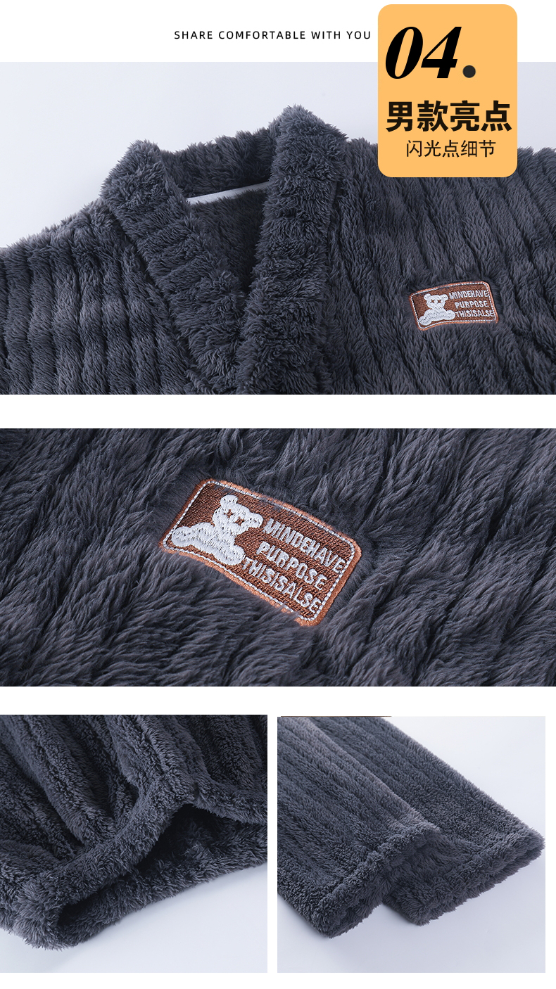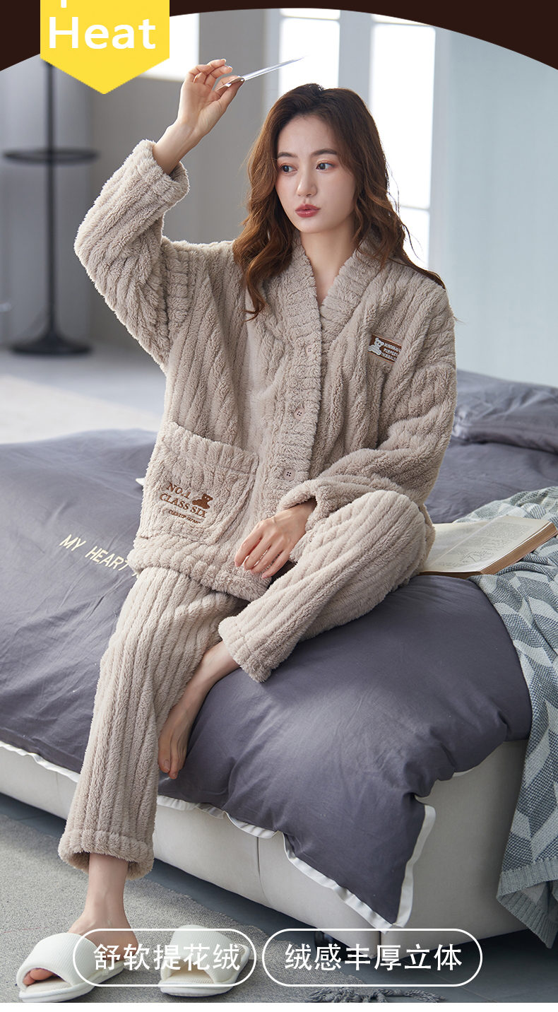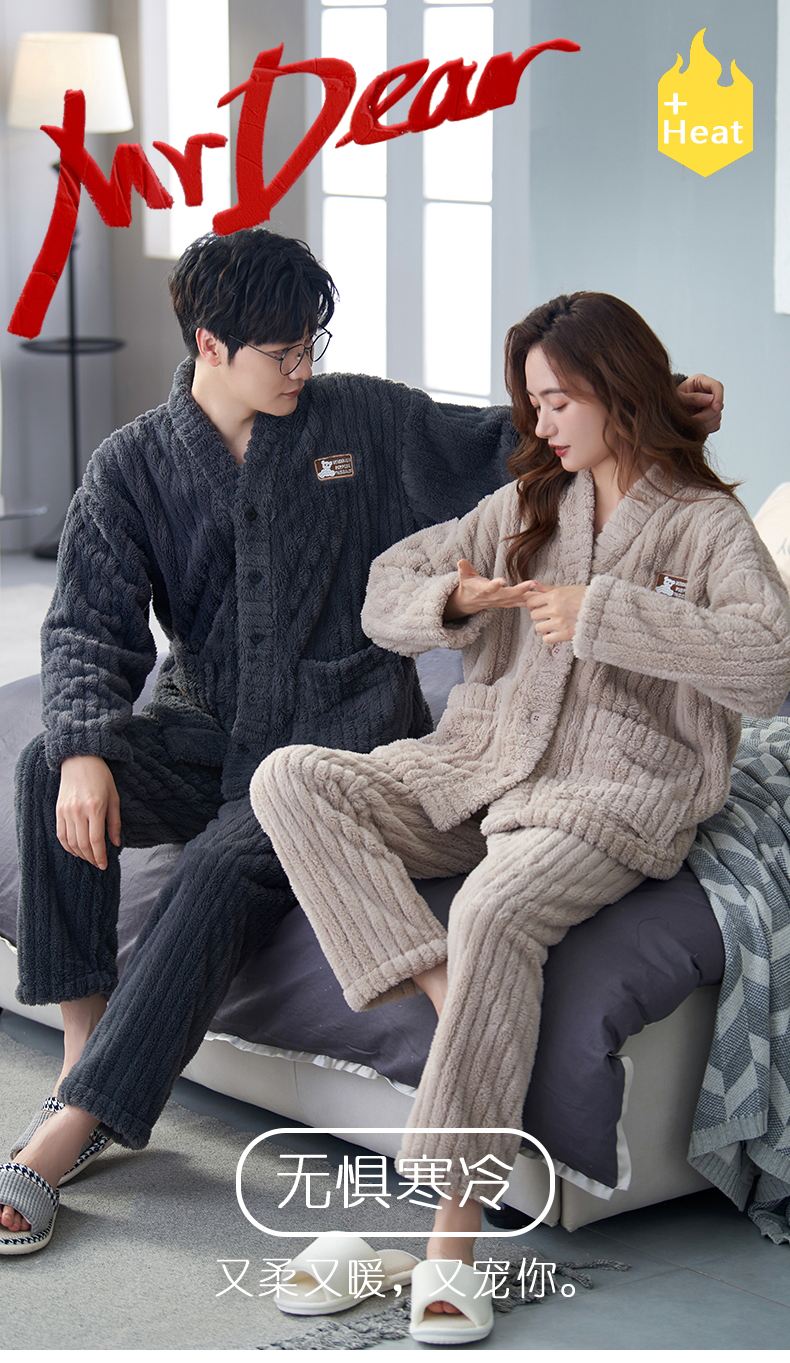 【9个款式任选情侣家居服】简约大方休闲保暖V领开衫情侣睡衣套装可外穿加厚珊瑚绒男女同款