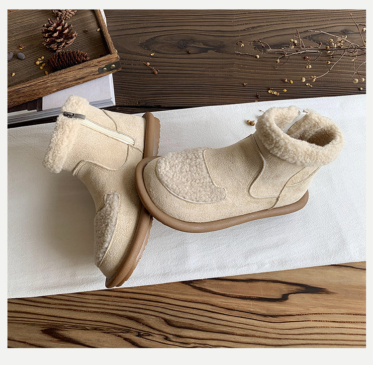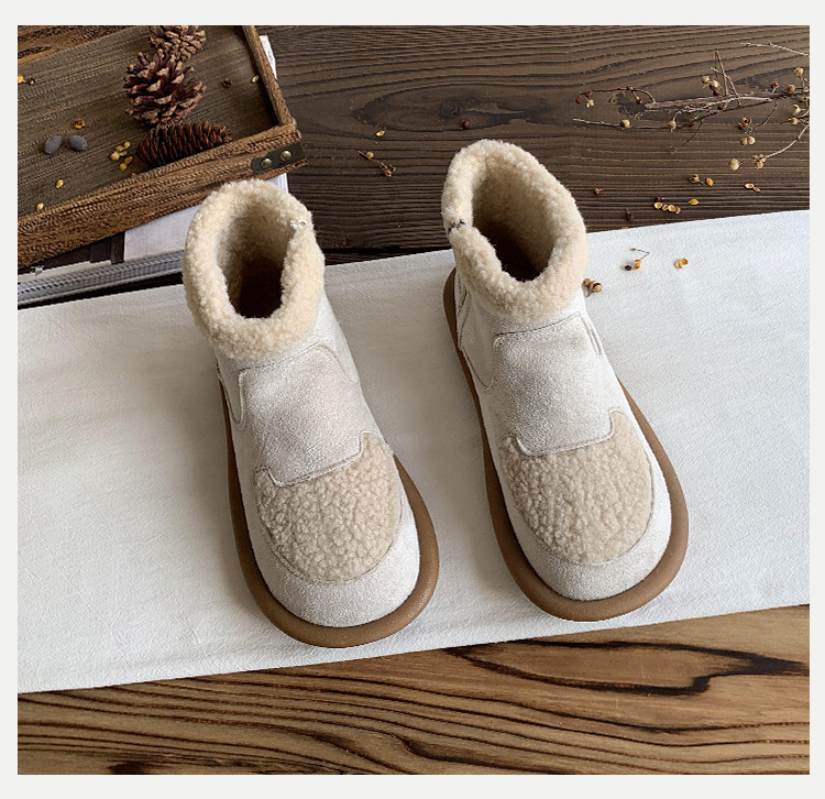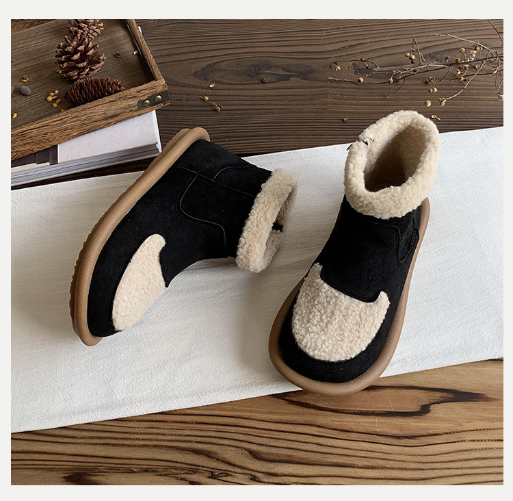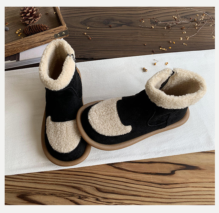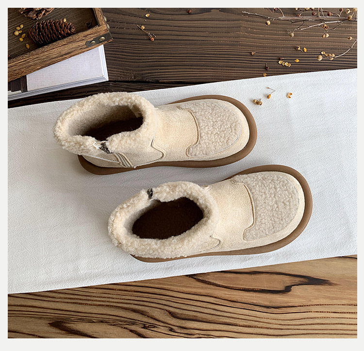 冬季保暖女鞋防滑雪地靴绒面短靴新款平底加绒棉鞋