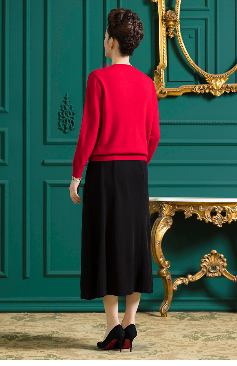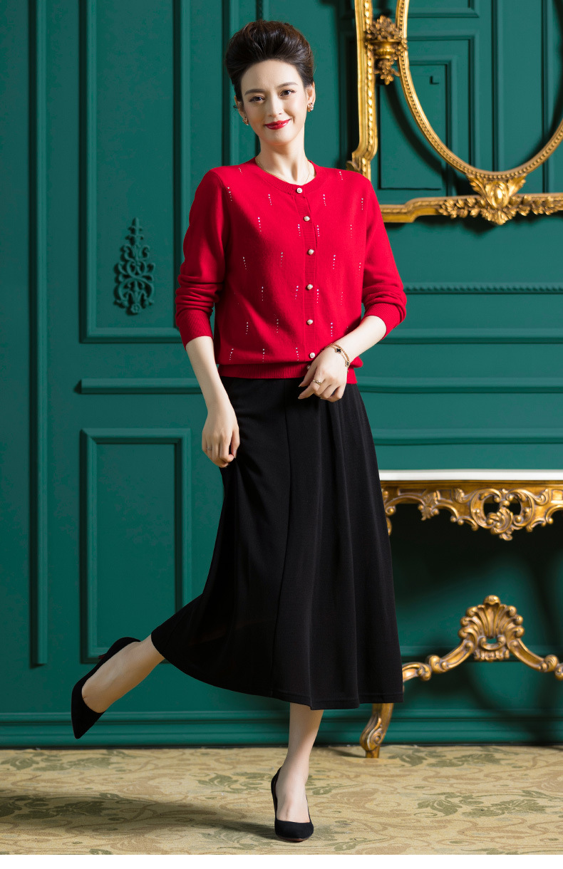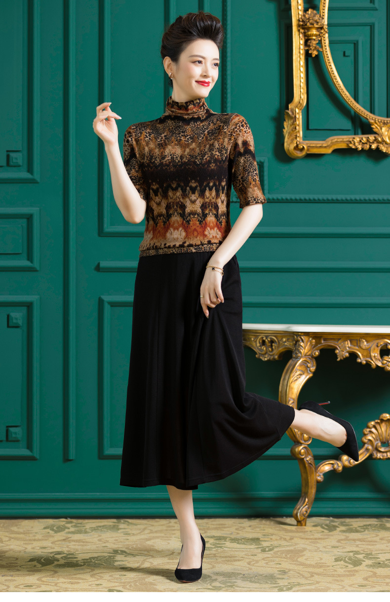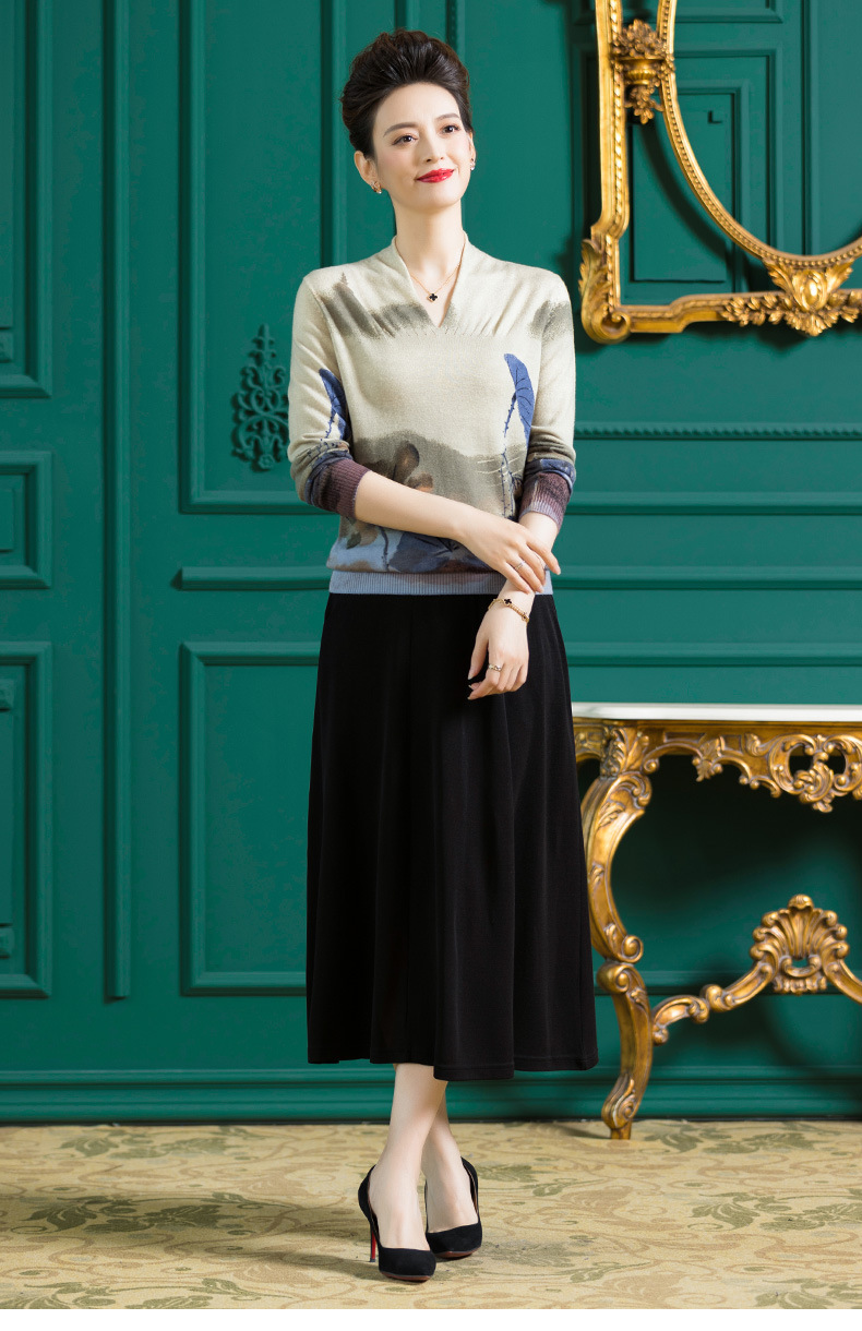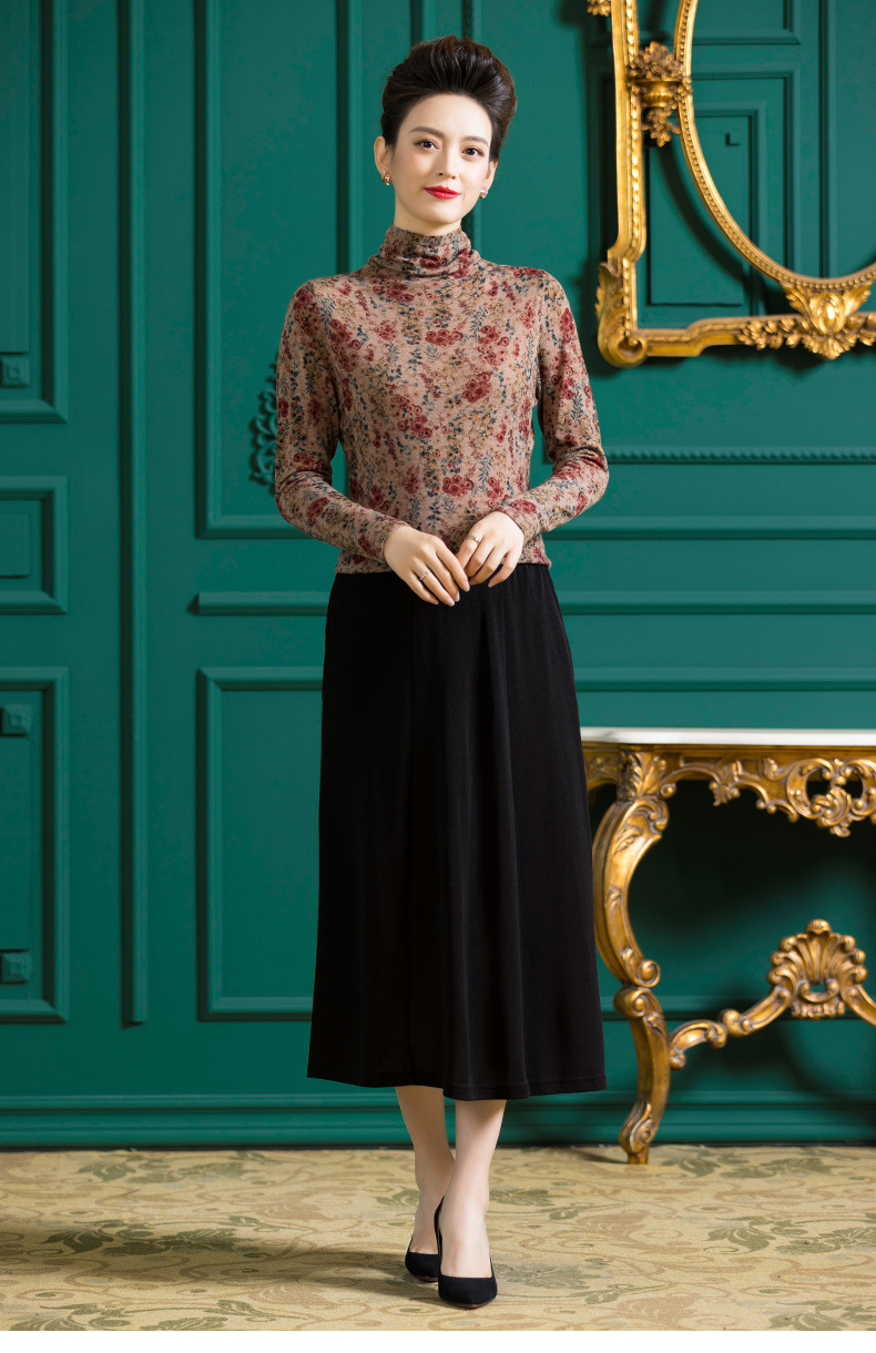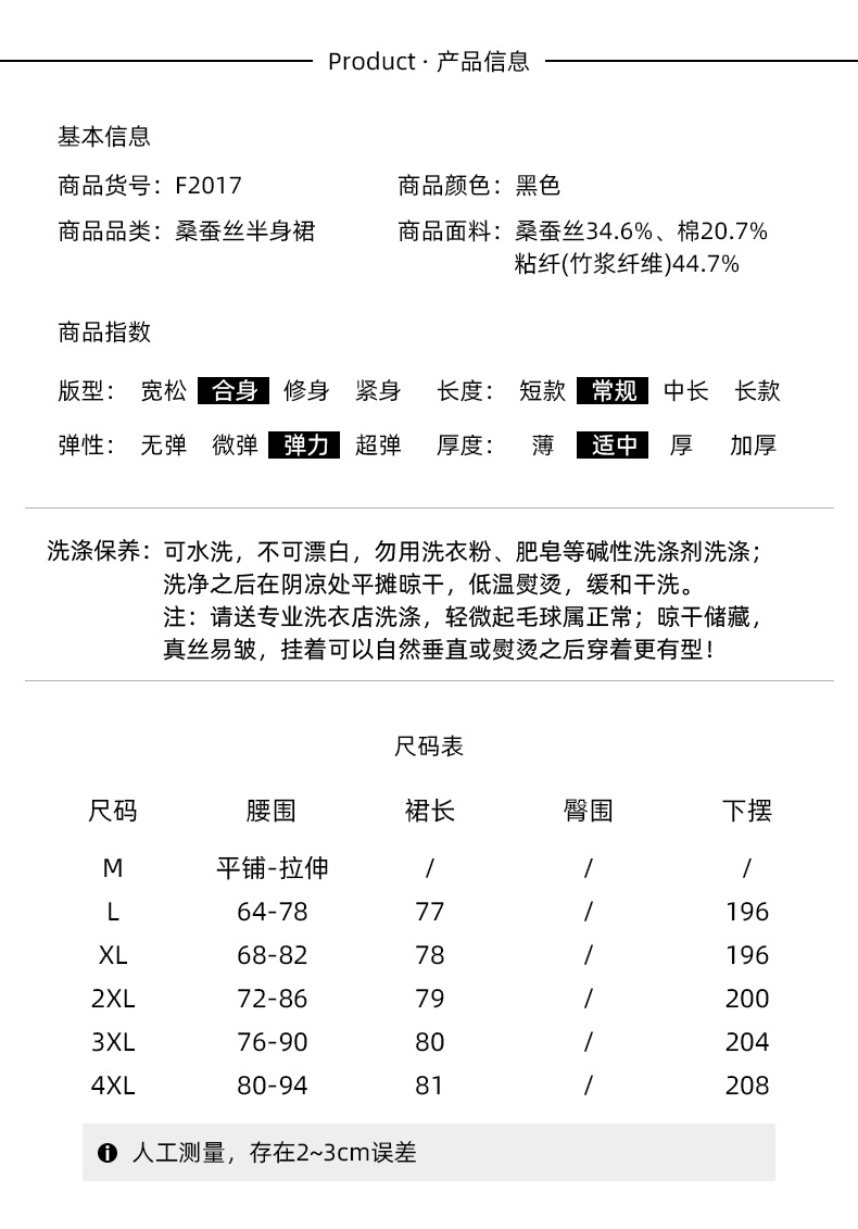 WWF2017 可机洗纯色真丝半身裙女夏季拼接中长裙桑蚕丝珠地针织A字裙