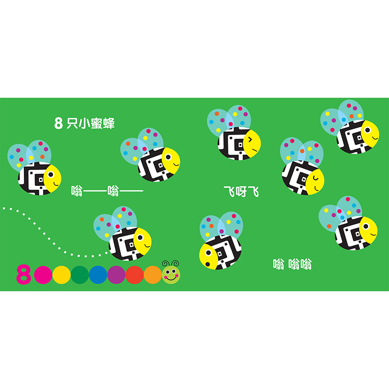 ★鲜明的对比色、富有节奏的拟声词以及可爱的插图能刺激婴儿大脑,激发其学习能力