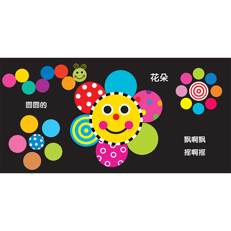 ★婴儿喜欢看“脸”的图案是出于本能,封面采用的黑色背景让色彩亮丽的“脸”的图案清晰浮现,便于婴儿捕捉,激发婴儿好奇心