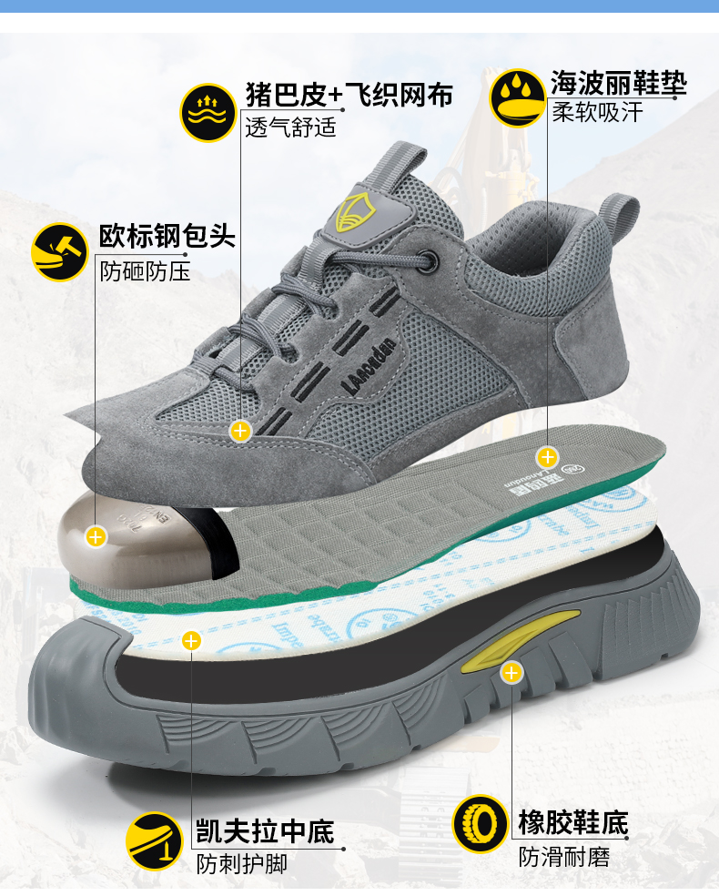 蓝鸥盾劳保鞋男防砸防刺安全鞋钢包头工作鞋橡胶底