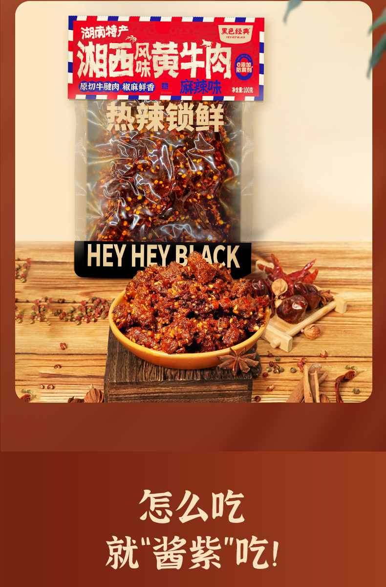 【鲜卤】黑色经典短保湘西风味黄牛肉100g/袋 25天短保新鲜卤制