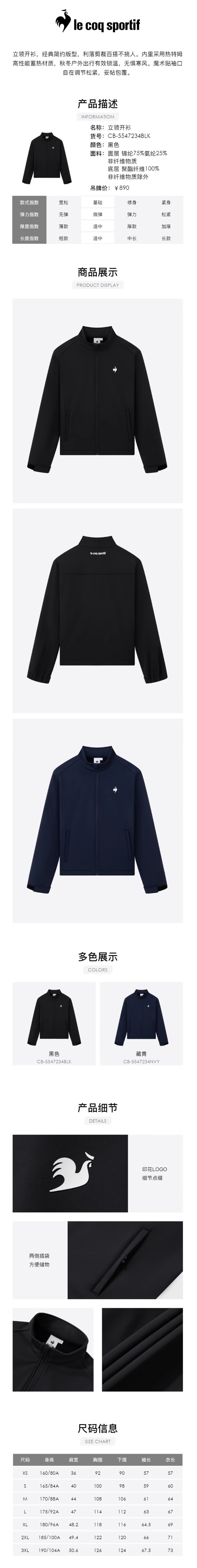【大都会店】乐卡克 法国公鸡冬季男女防风立领舒适保暖开衫外套CB-5547234