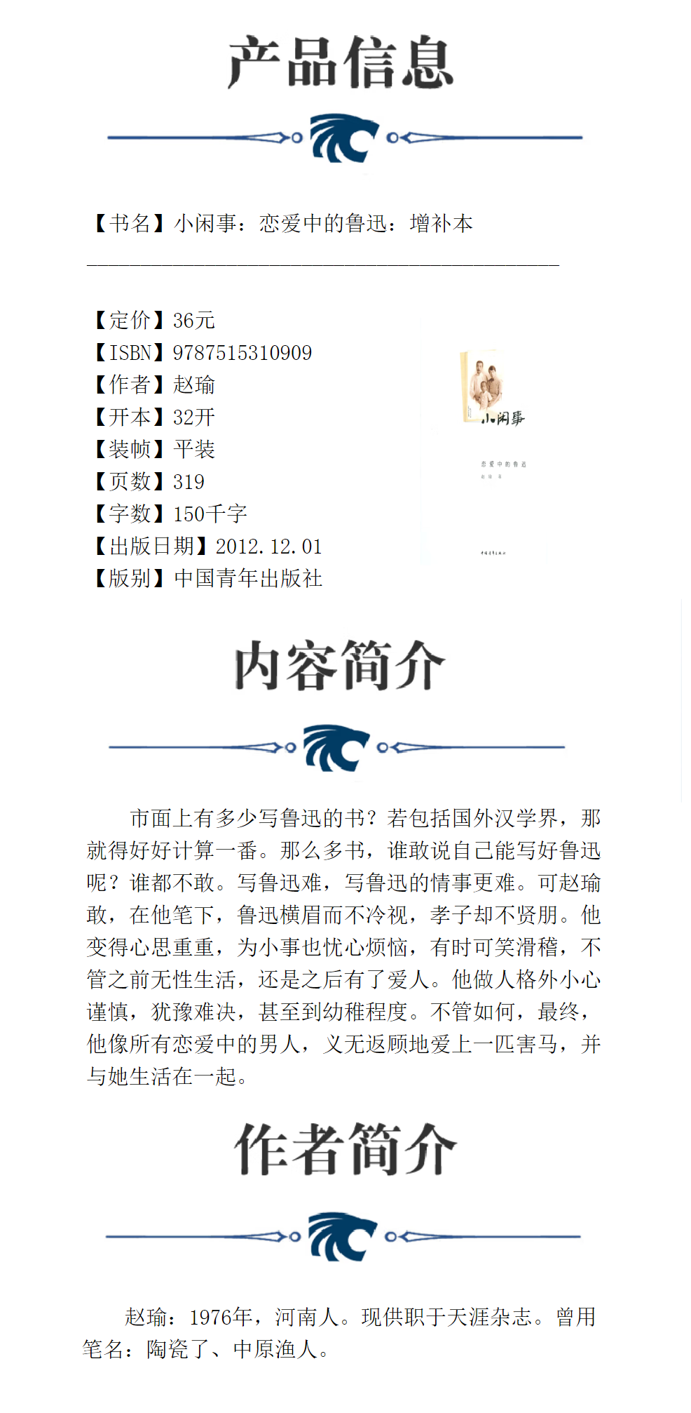 小闲事:恋爱中的鲁迅:增补本 赵瑜著 中国青年出版社