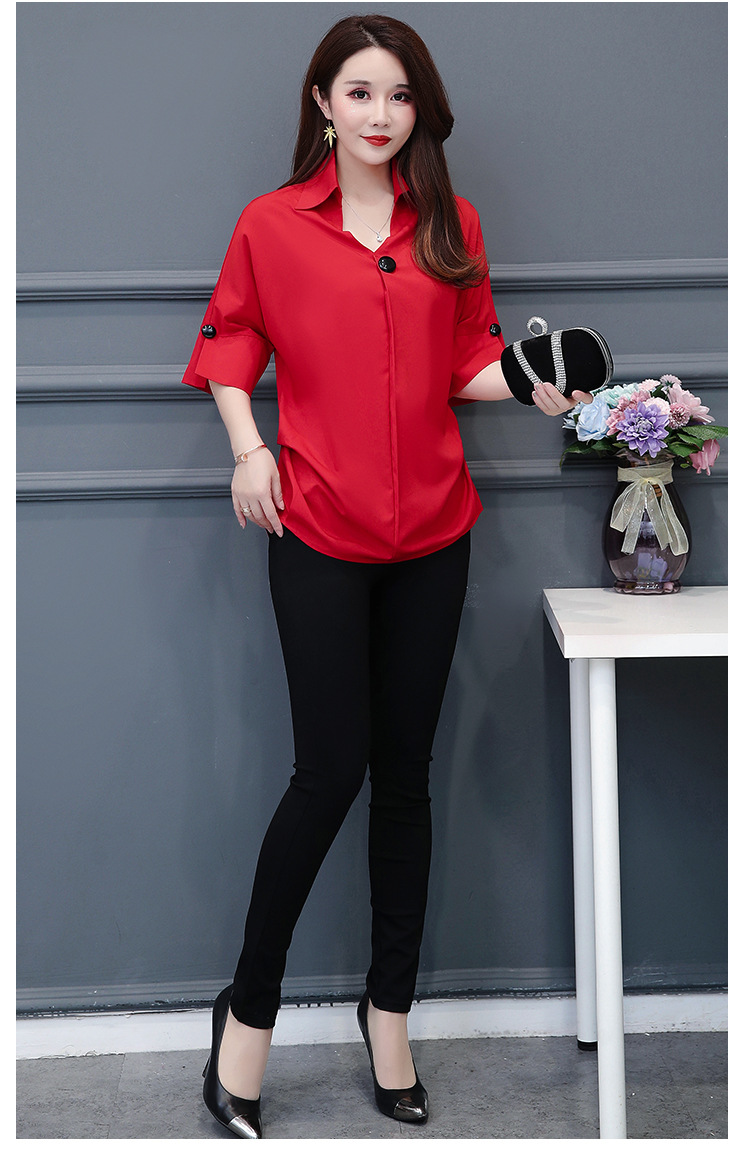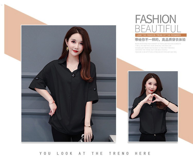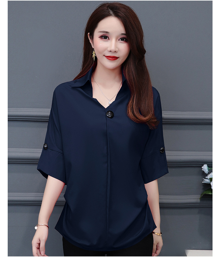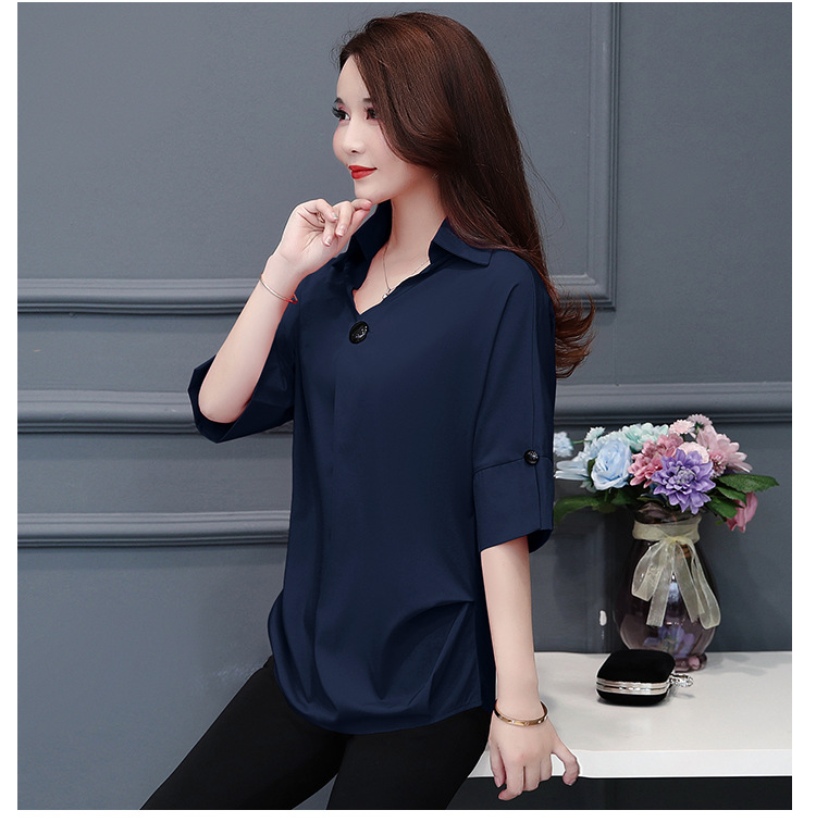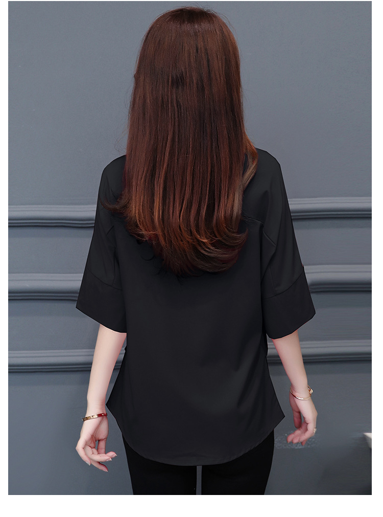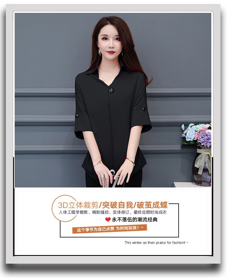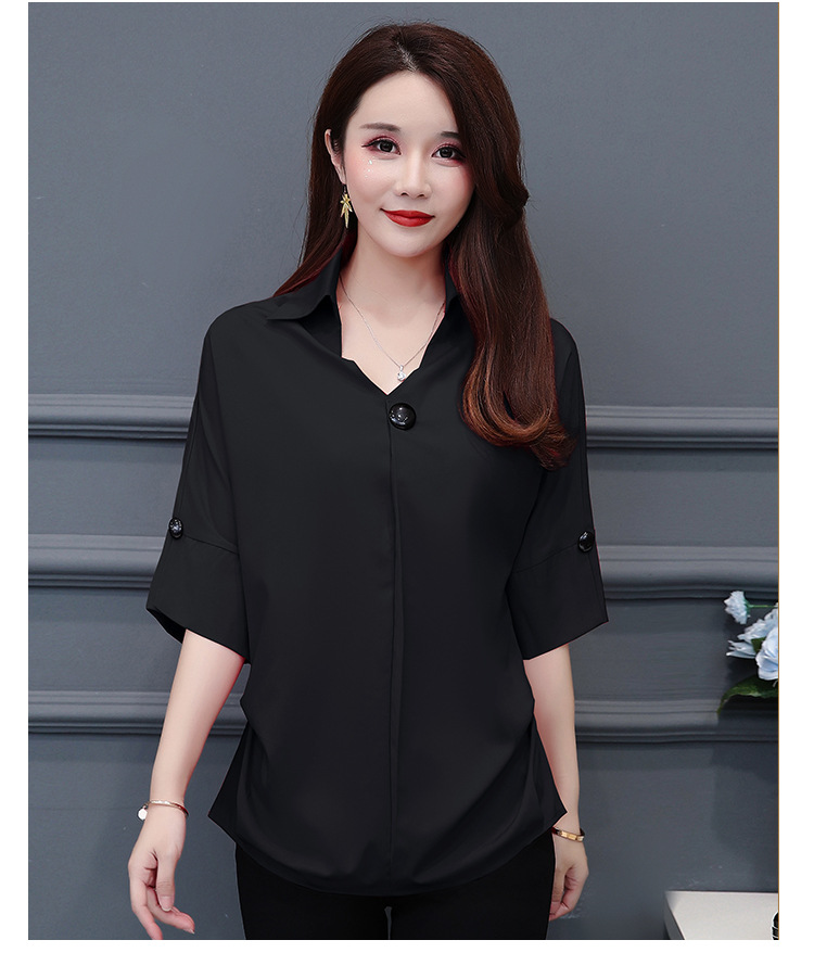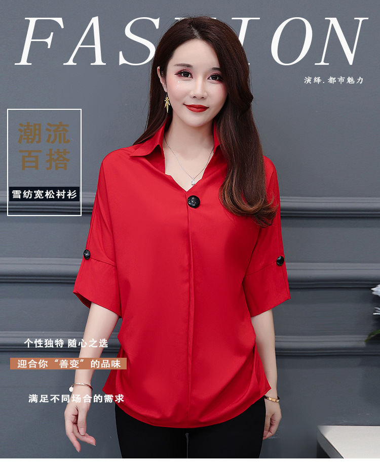 BFSC-9880新款V领胖MM宽松显瘦中袖打底雪纺上衣