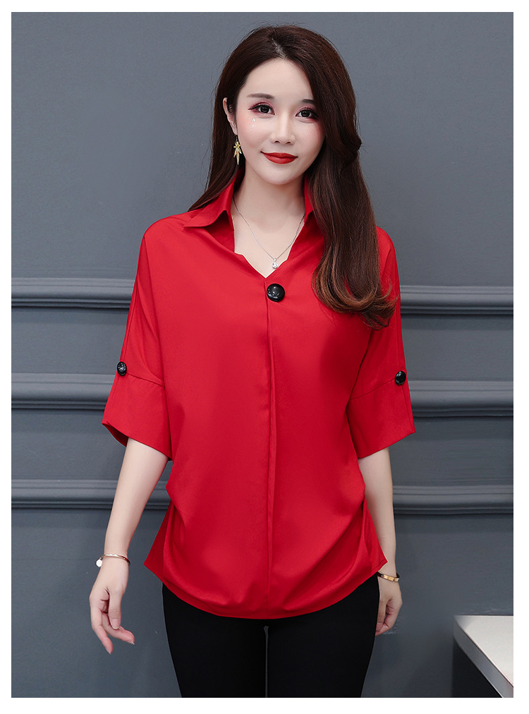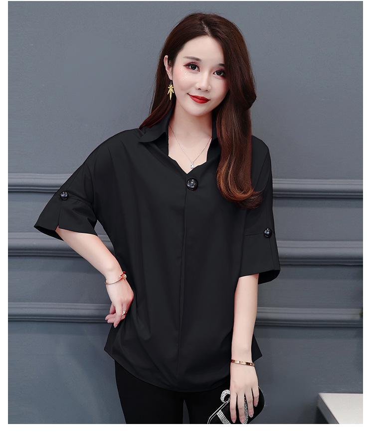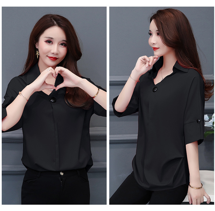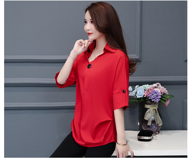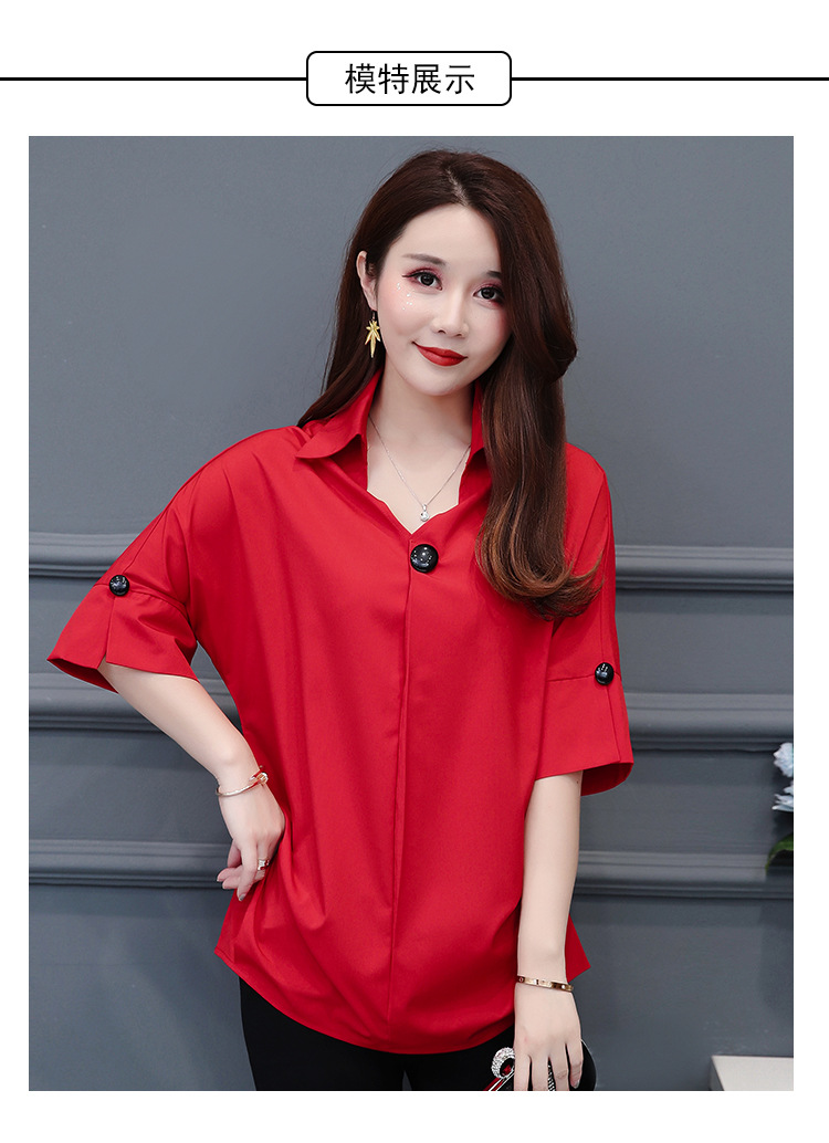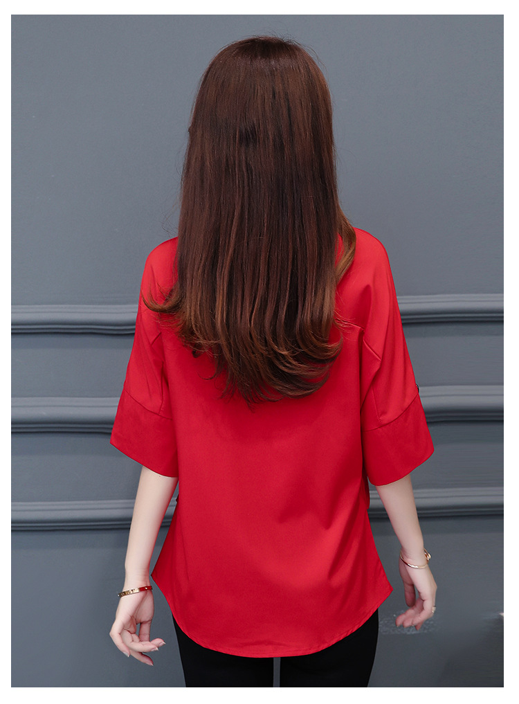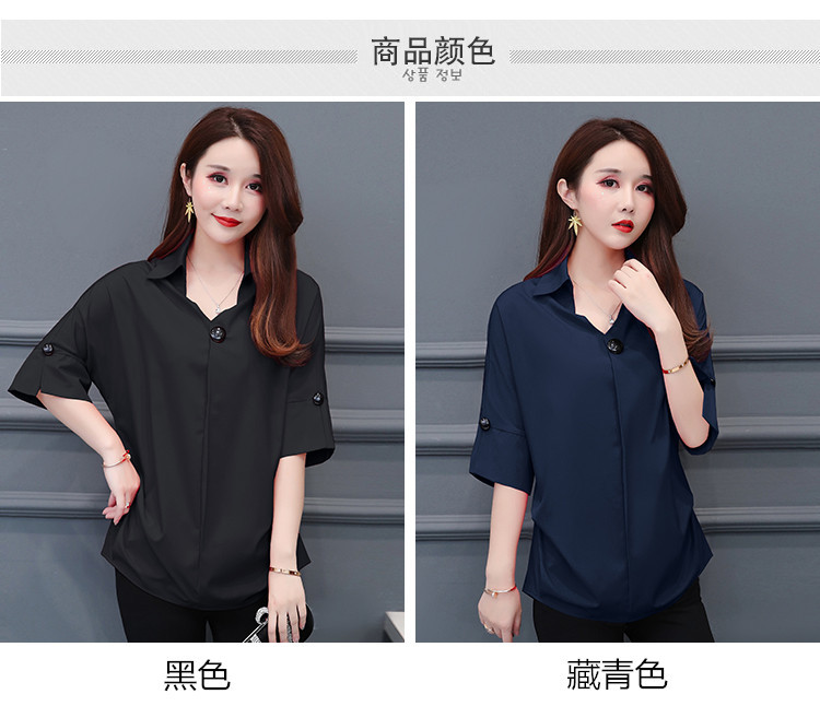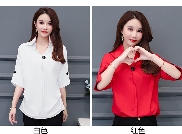 BFSC-9880新款V领胖MM宽松显瘦中袖打底雪纺上衣