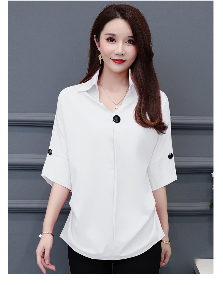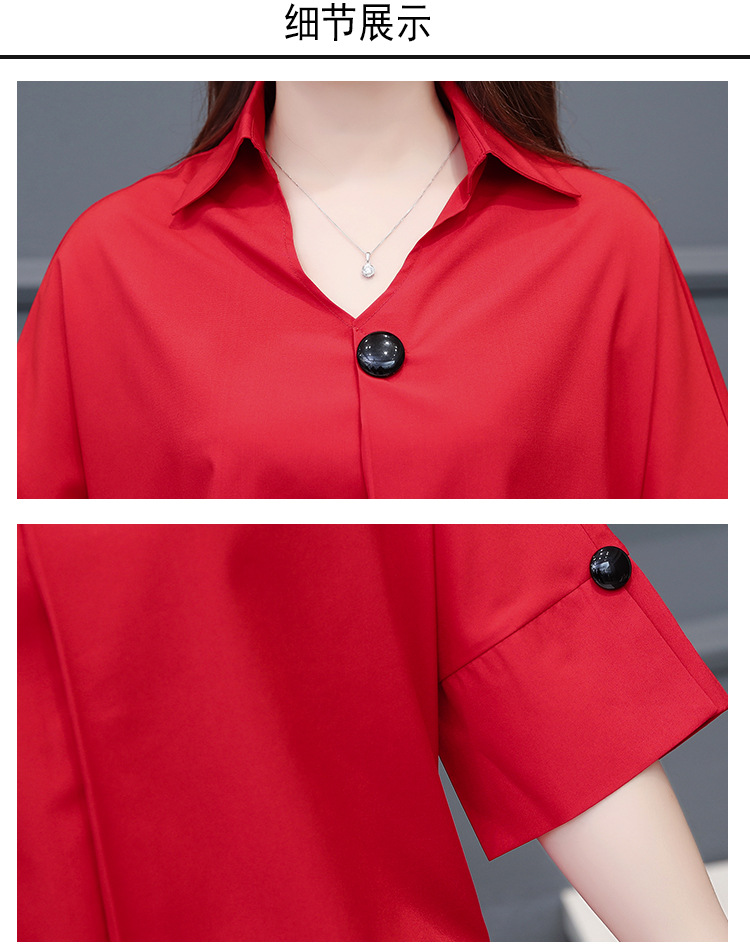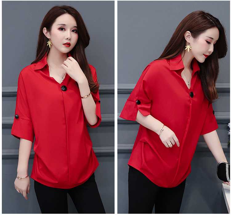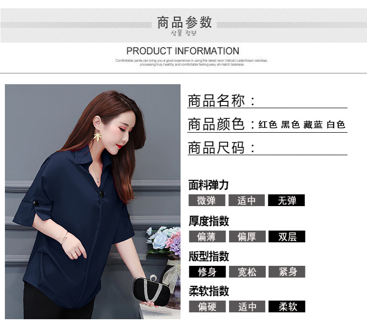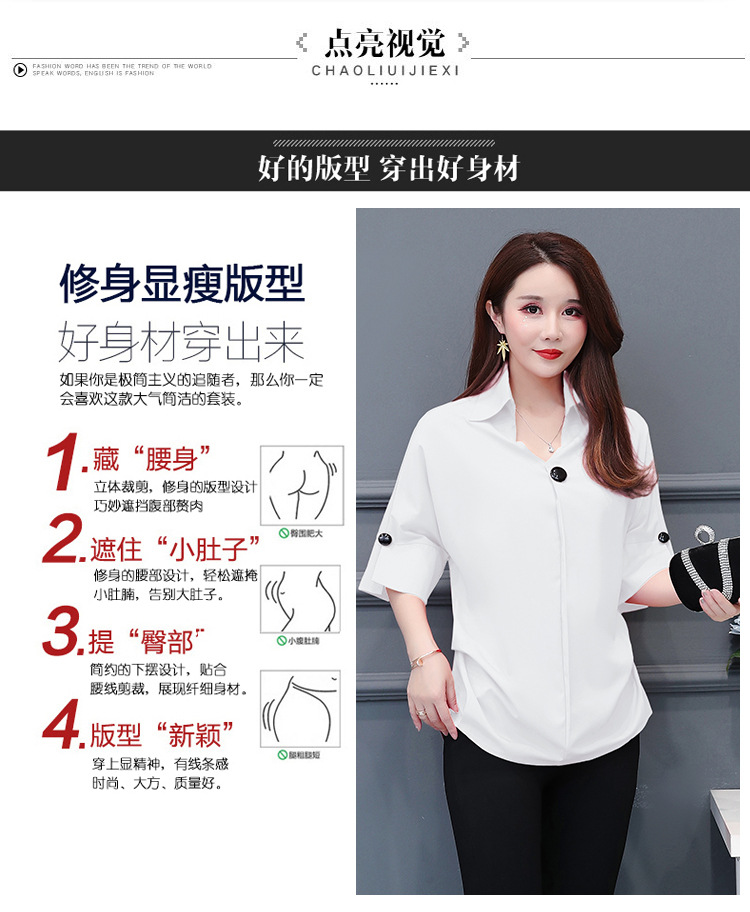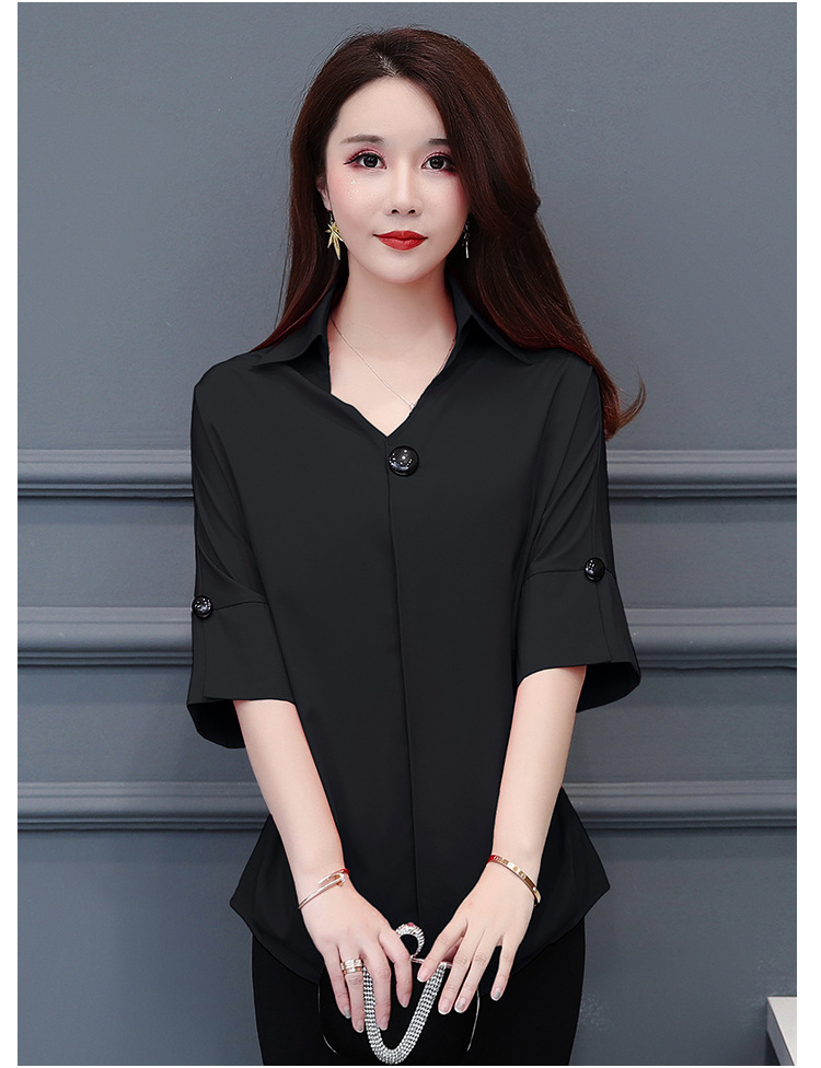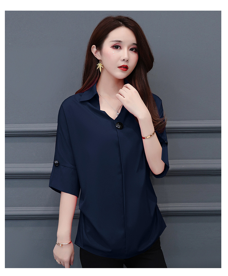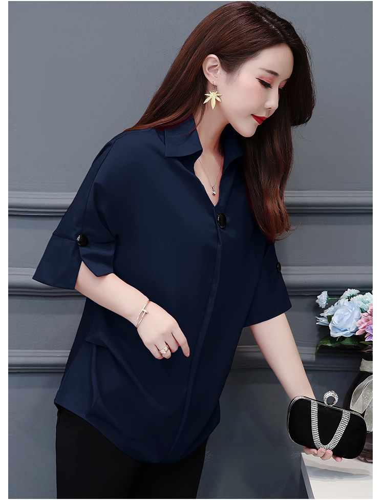 BFSC-9880新款V领胖MM宽松显瘦中袖打底雪纺上衣