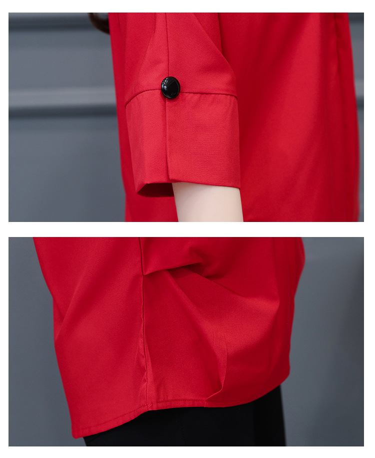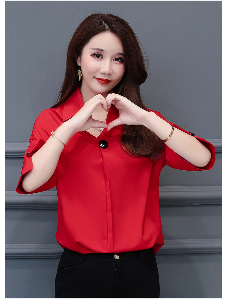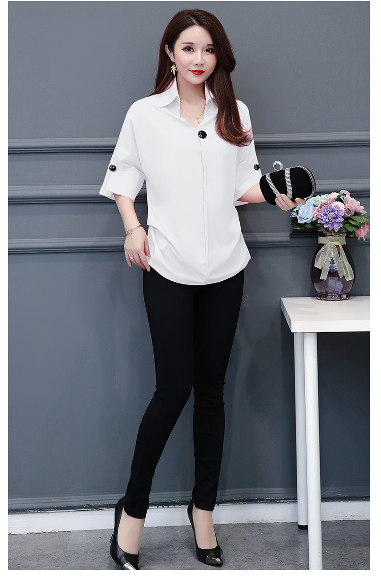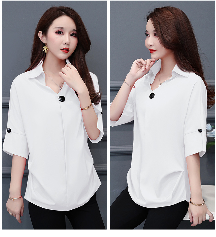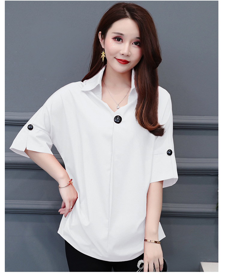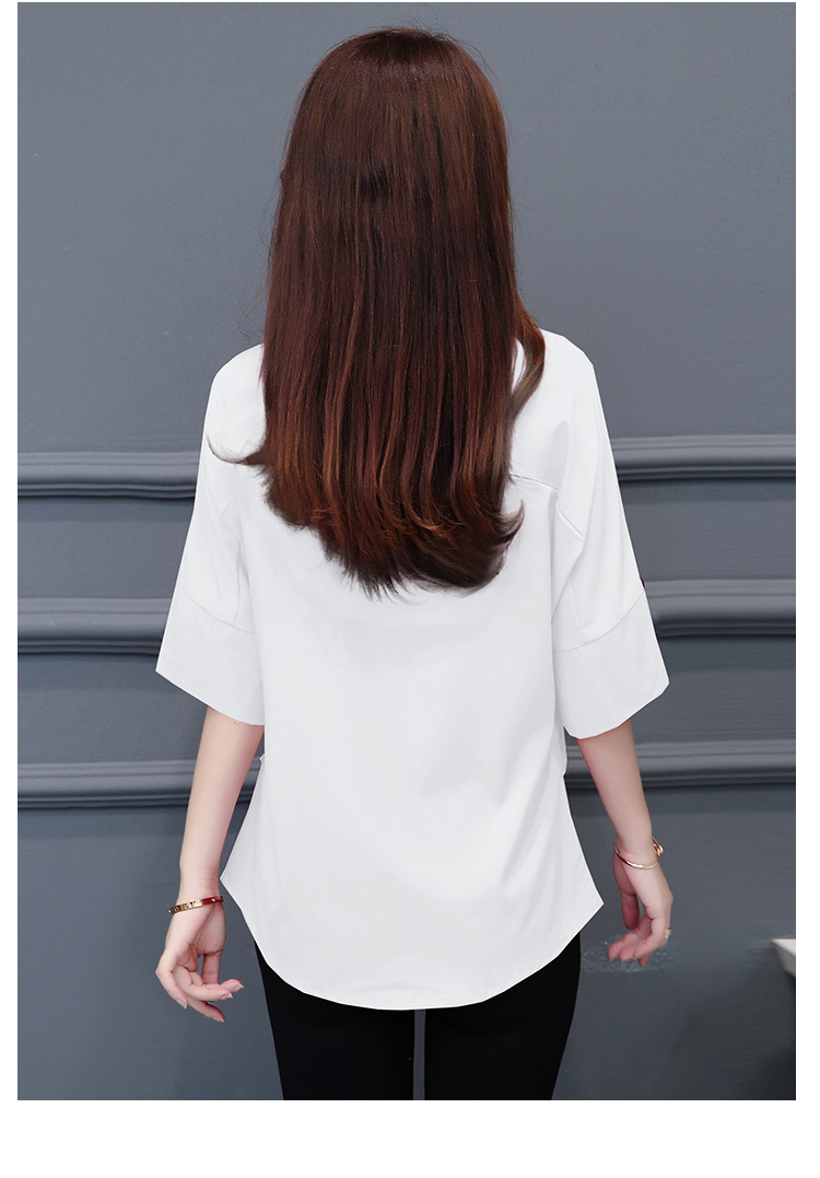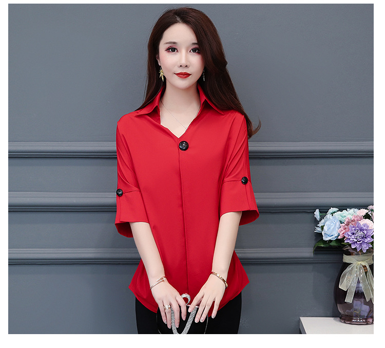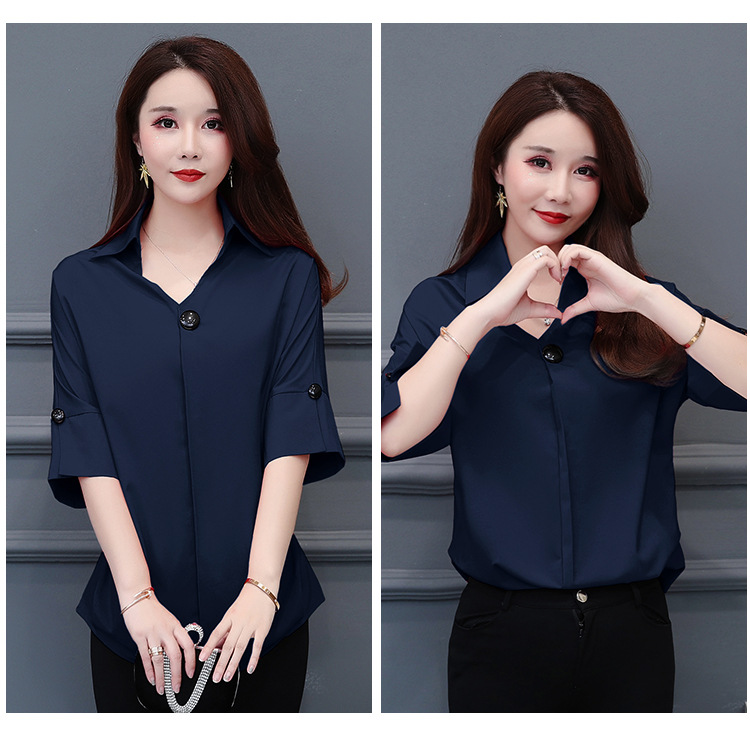 BFSC-9880新款V领胖MM宽松显瘦中袖打底雪纺上衣