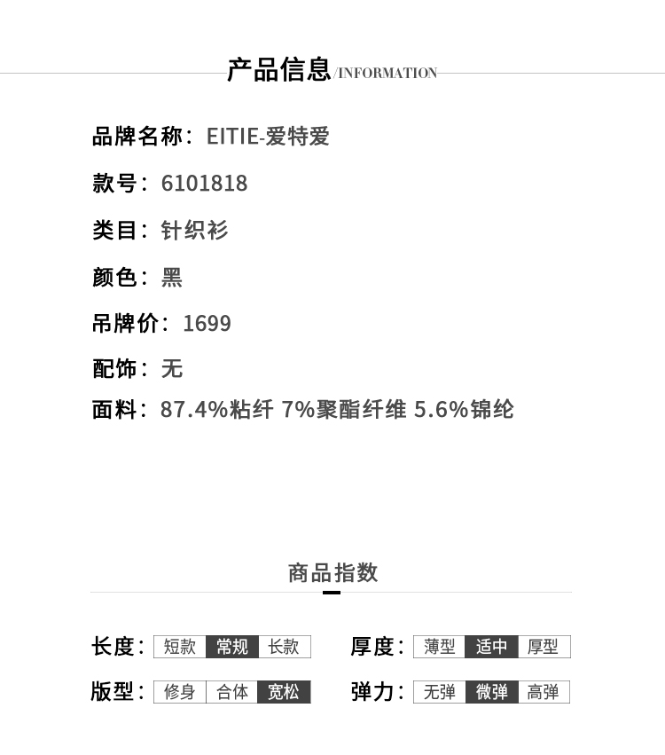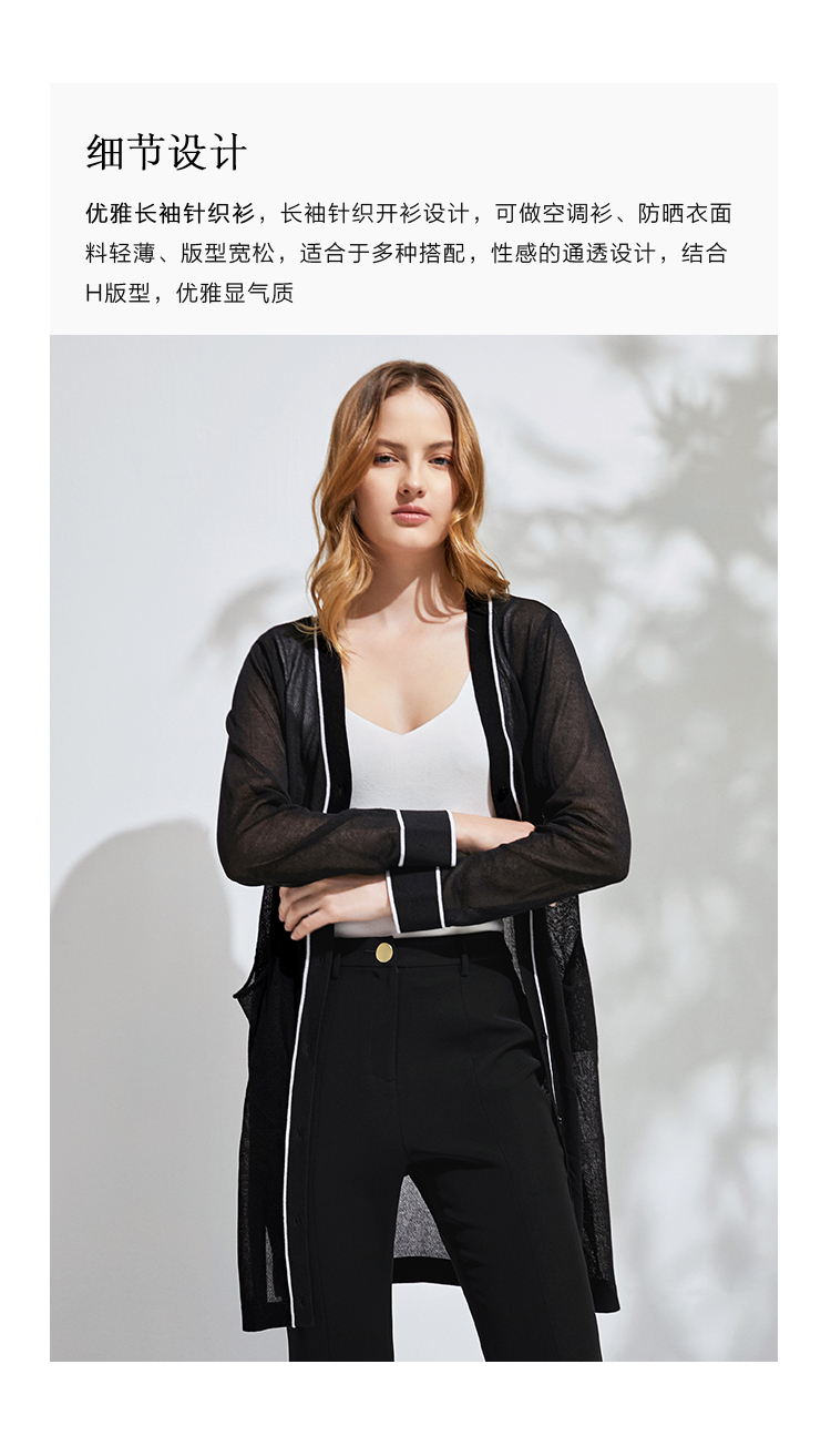 EITIE爱特爱春季新款通勤显瘦百搭舒适透气防晒针织开衫外套6101818