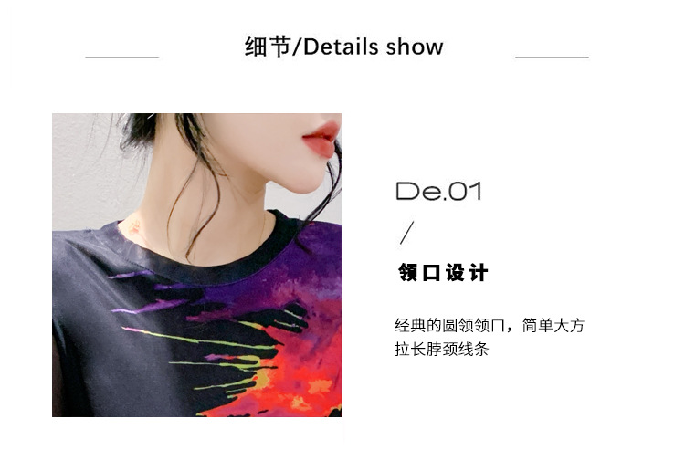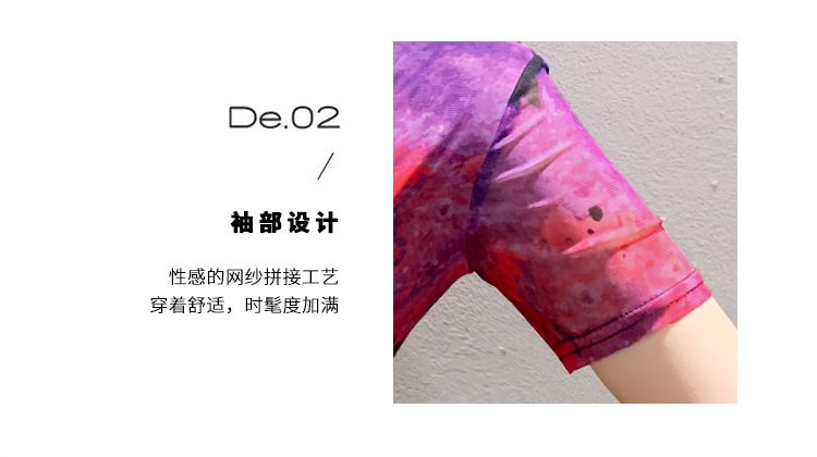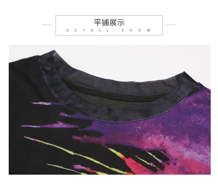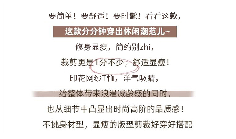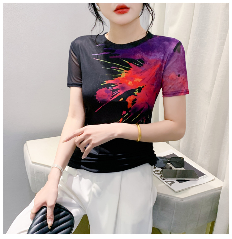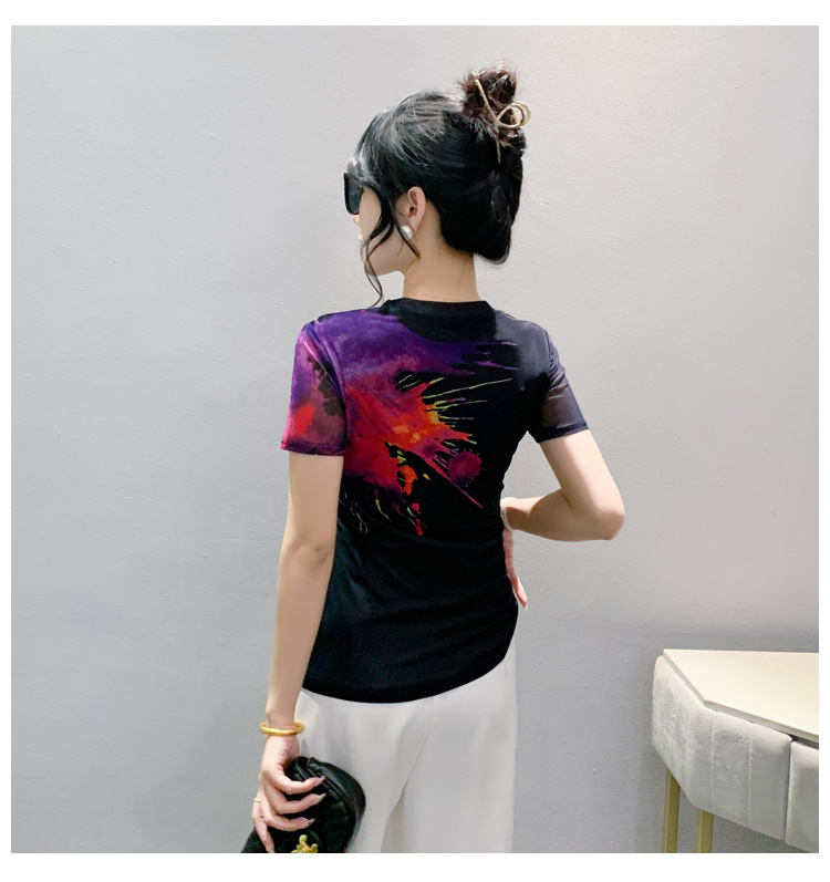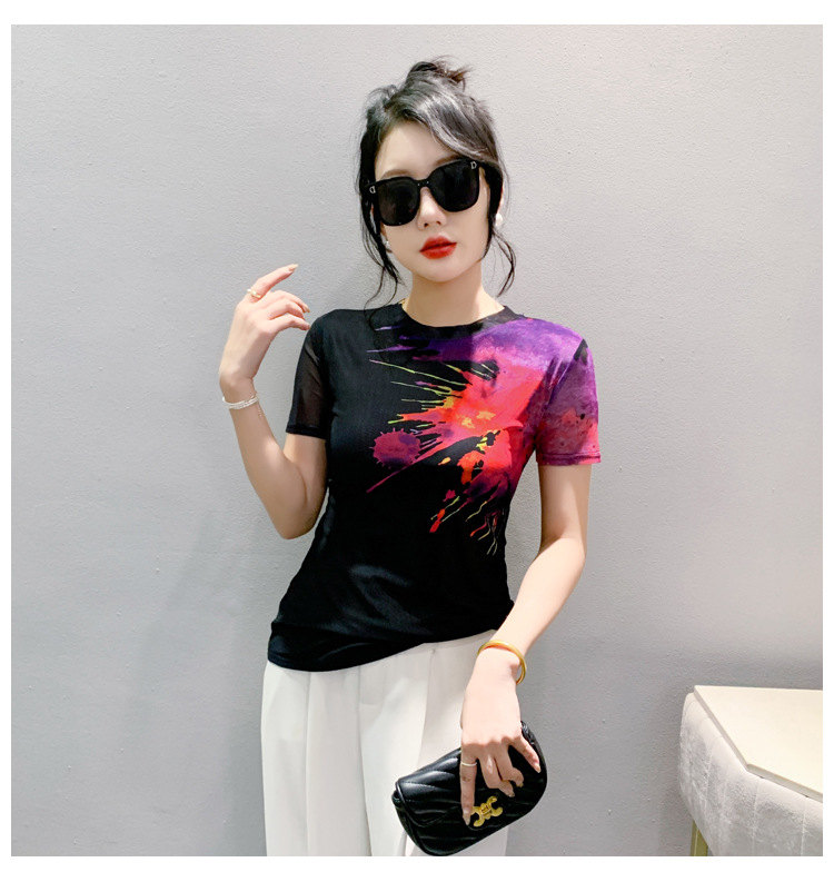 时尚纱网印花定位花,短袖圆领修身显瘦洋气上衣KQL-a55f8153
