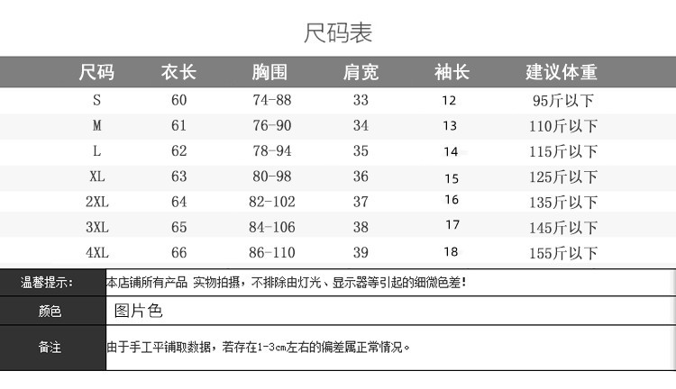 因裁剪工艺和丈量手法不同,可能存在1~3CM 左右误差,尺码仅供参考,以实物为准