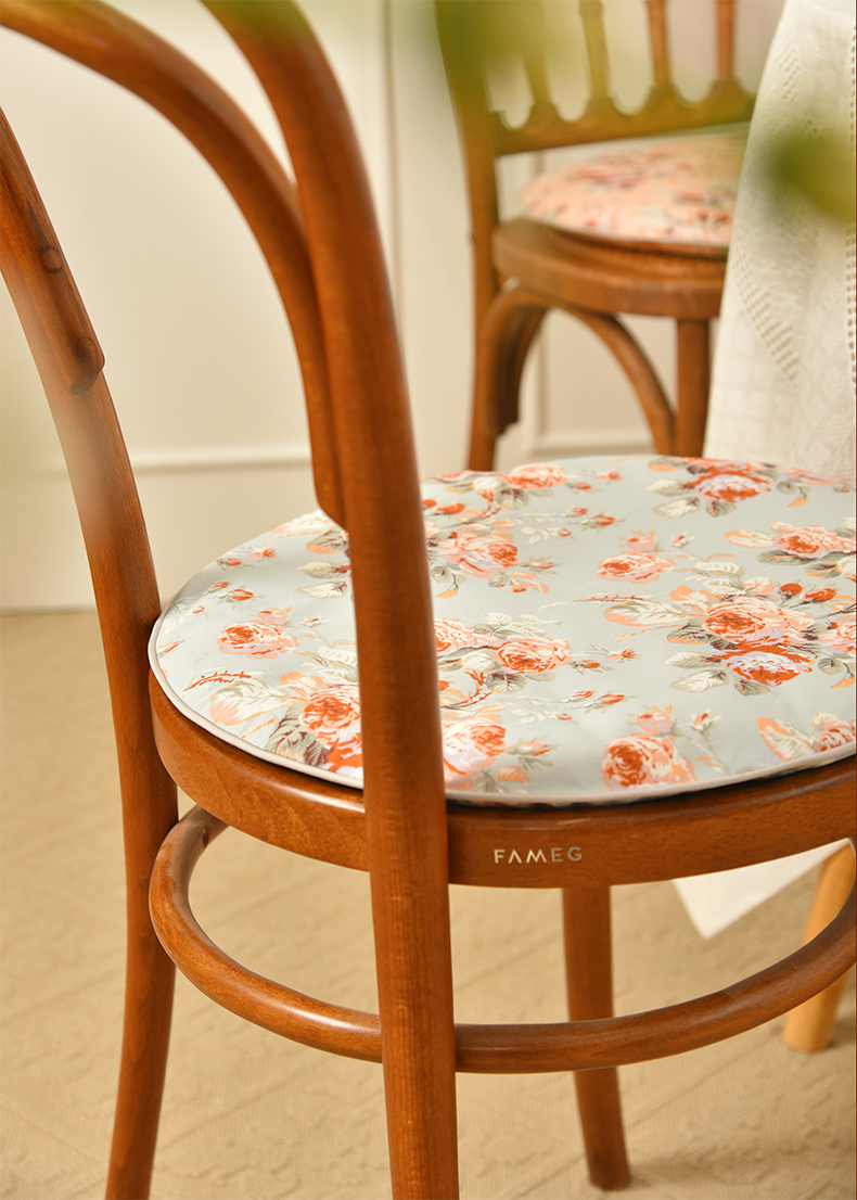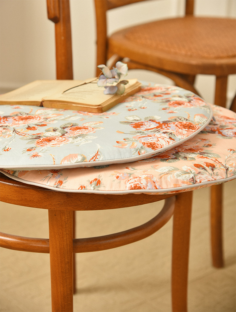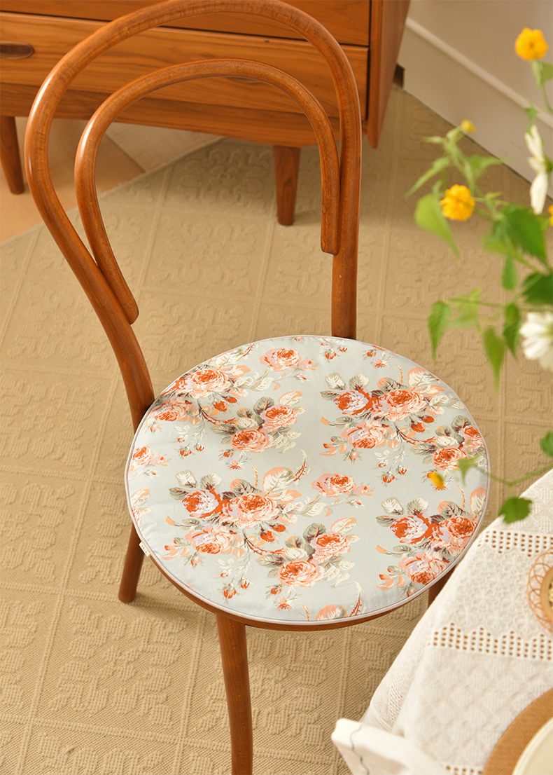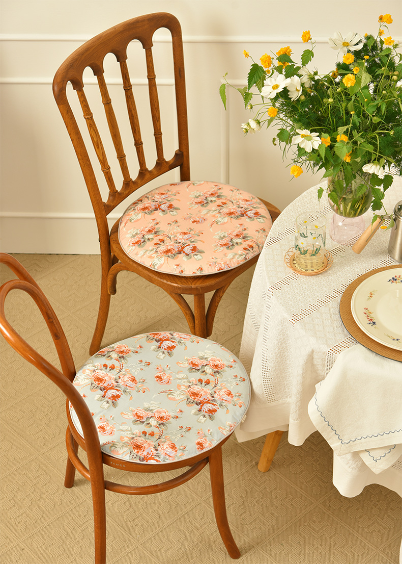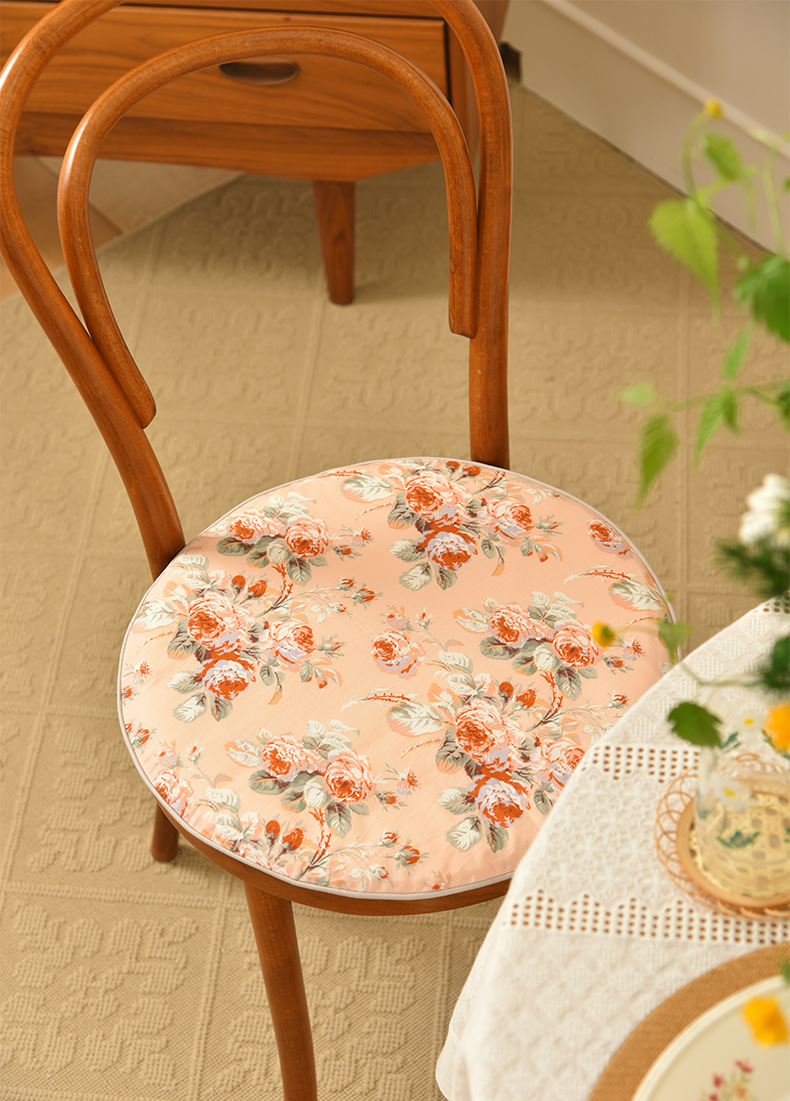 法式玫瑰椅垫家用四季通用中式实木加厚餐椅防滑圆形座垫