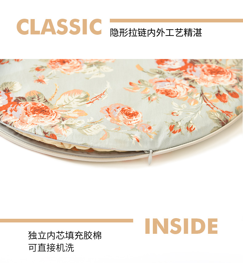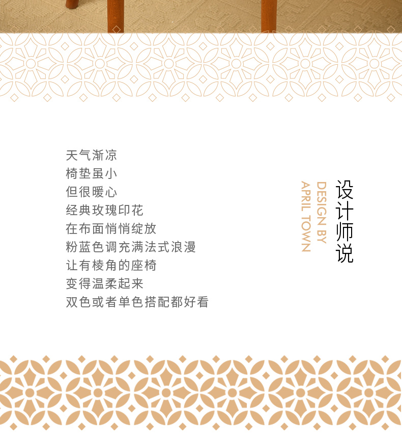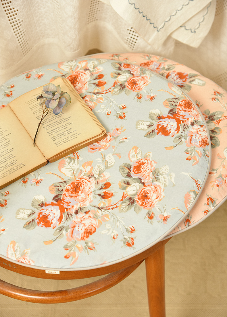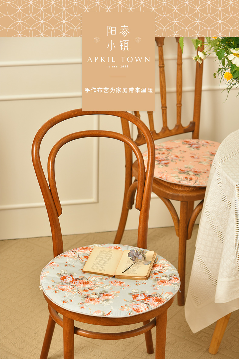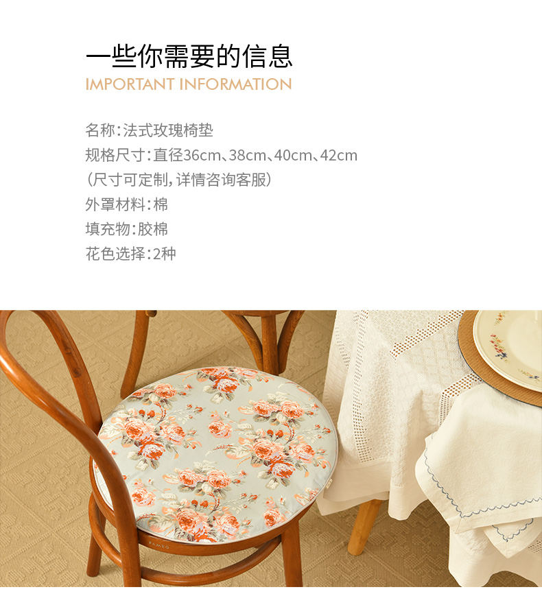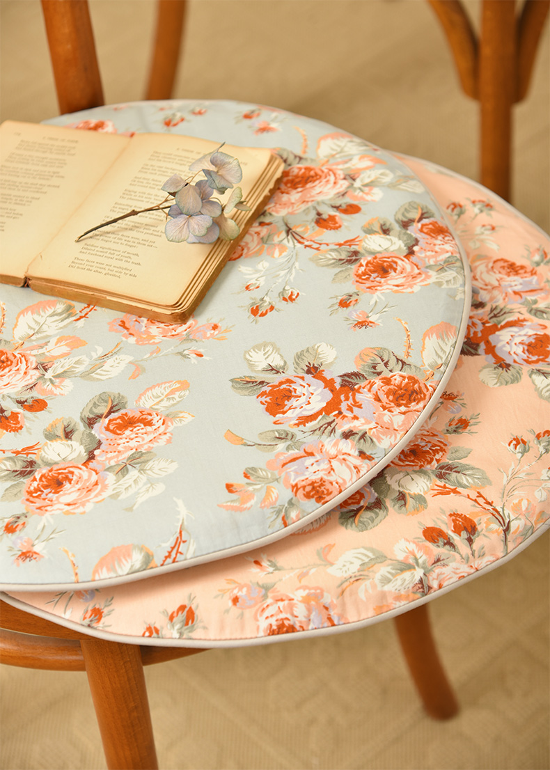 法式玫瑰椅垫家用四季通用中式实木加厚餐椅防滑圆形座垫