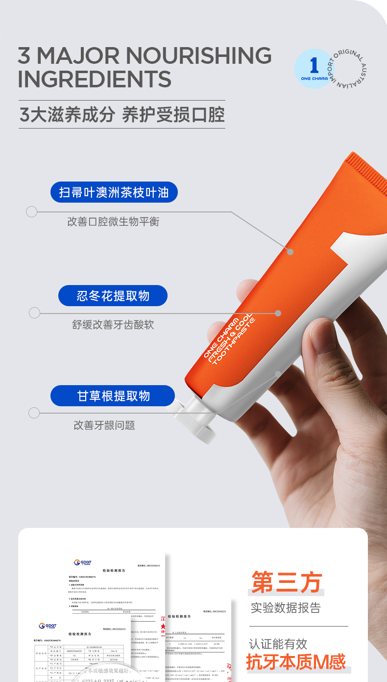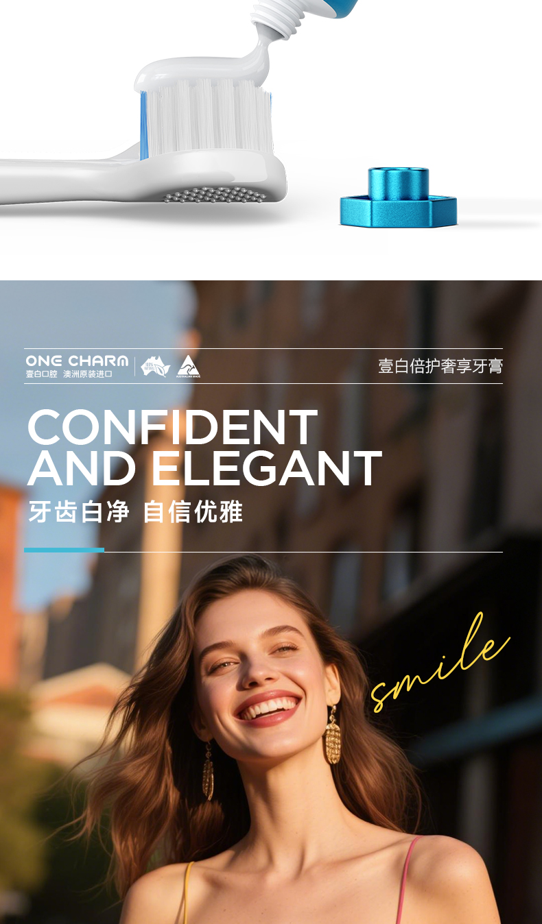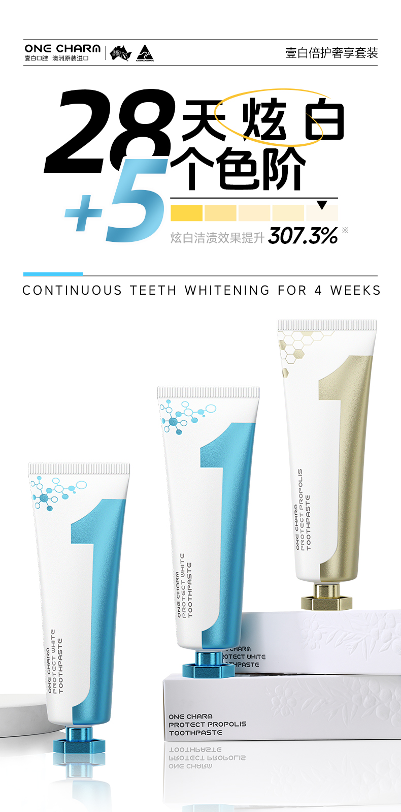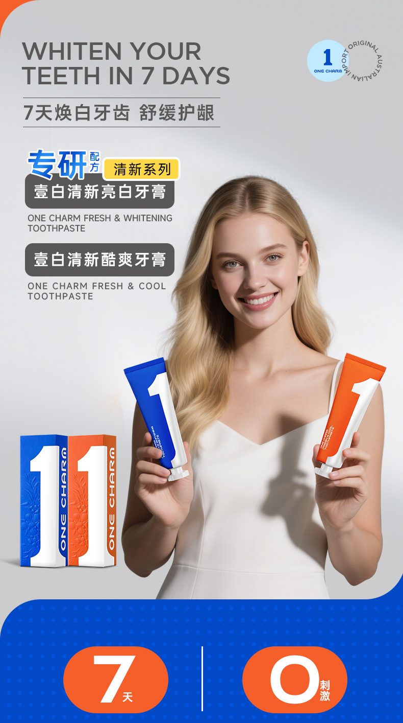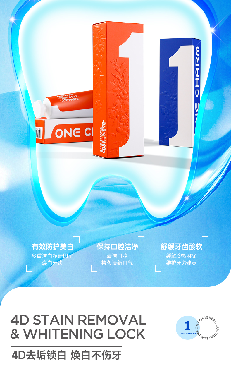 【澳洲原装进口 多种检测报告加持】ONECHARM壹白牙膏4支赠2支牙刷/8支