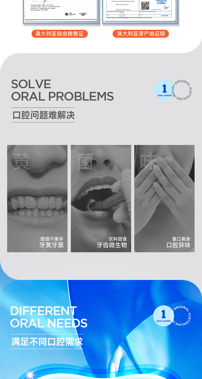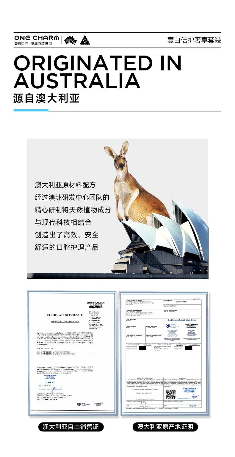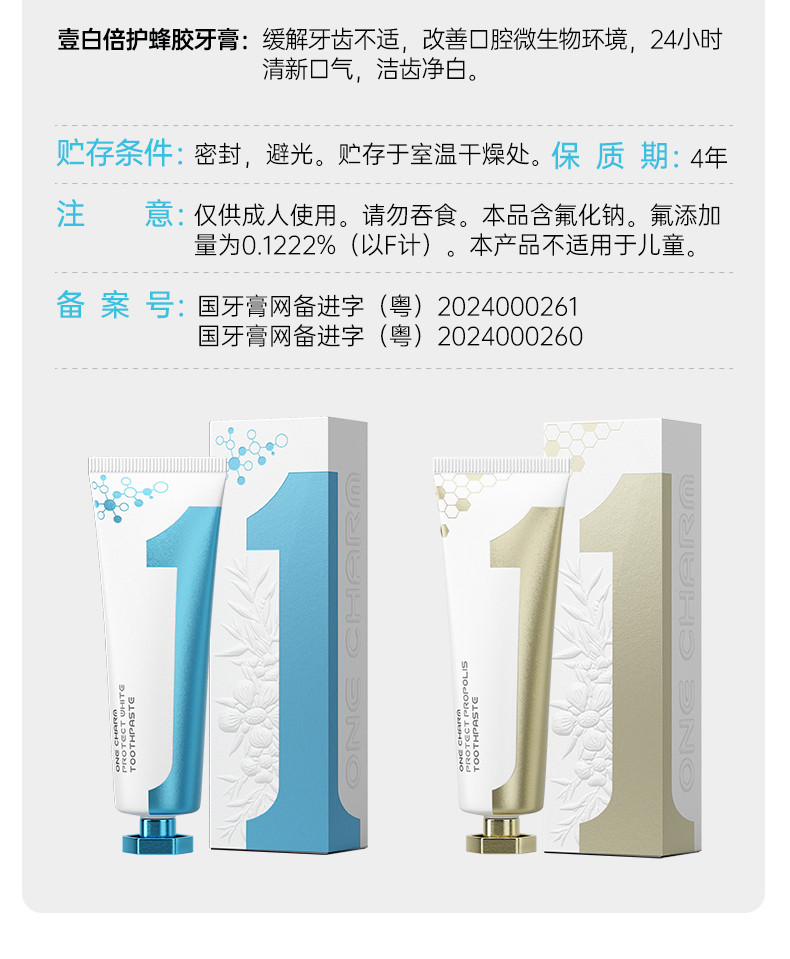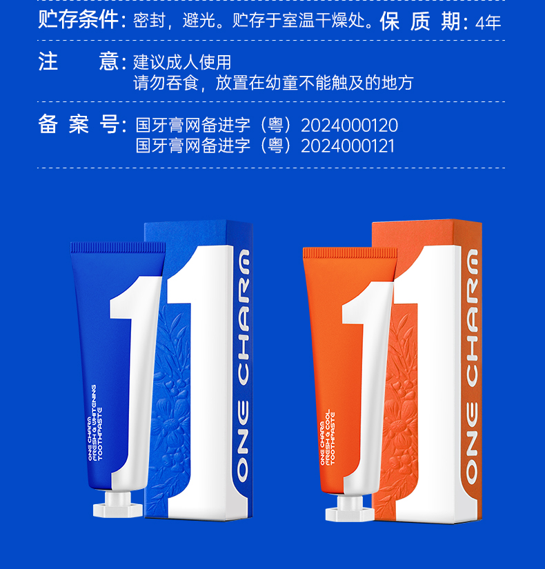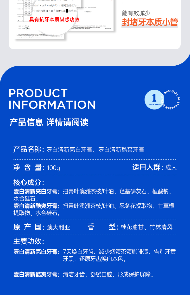 【澳洲原装进口 多种检测报告加持】ONECHARM壹白牙膏4支赠2支牙刷/8支