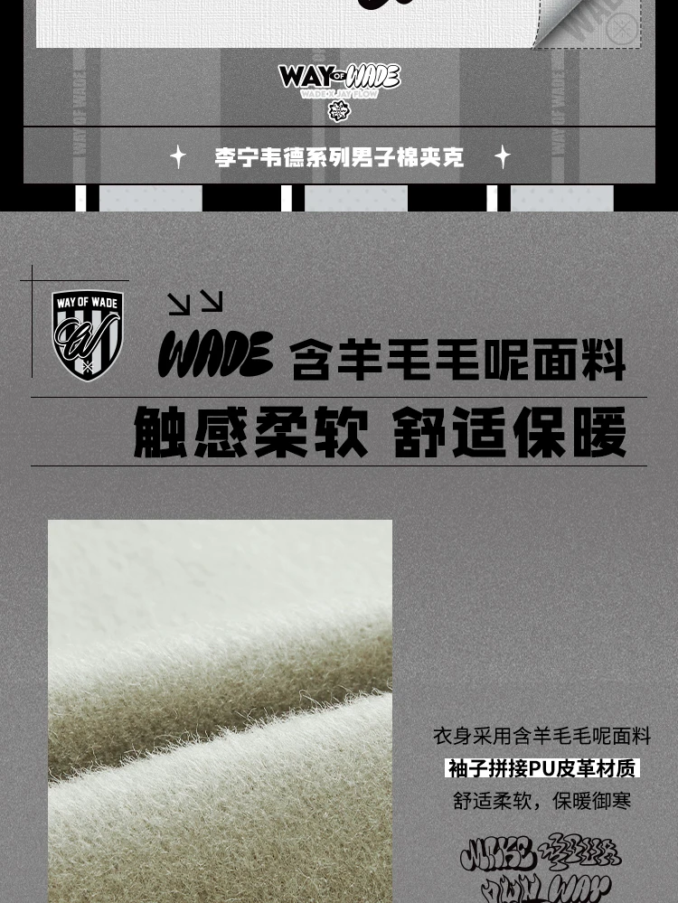 李宁韦德 x Jay Flow联名系列男子宽松棉夹克AJMV287