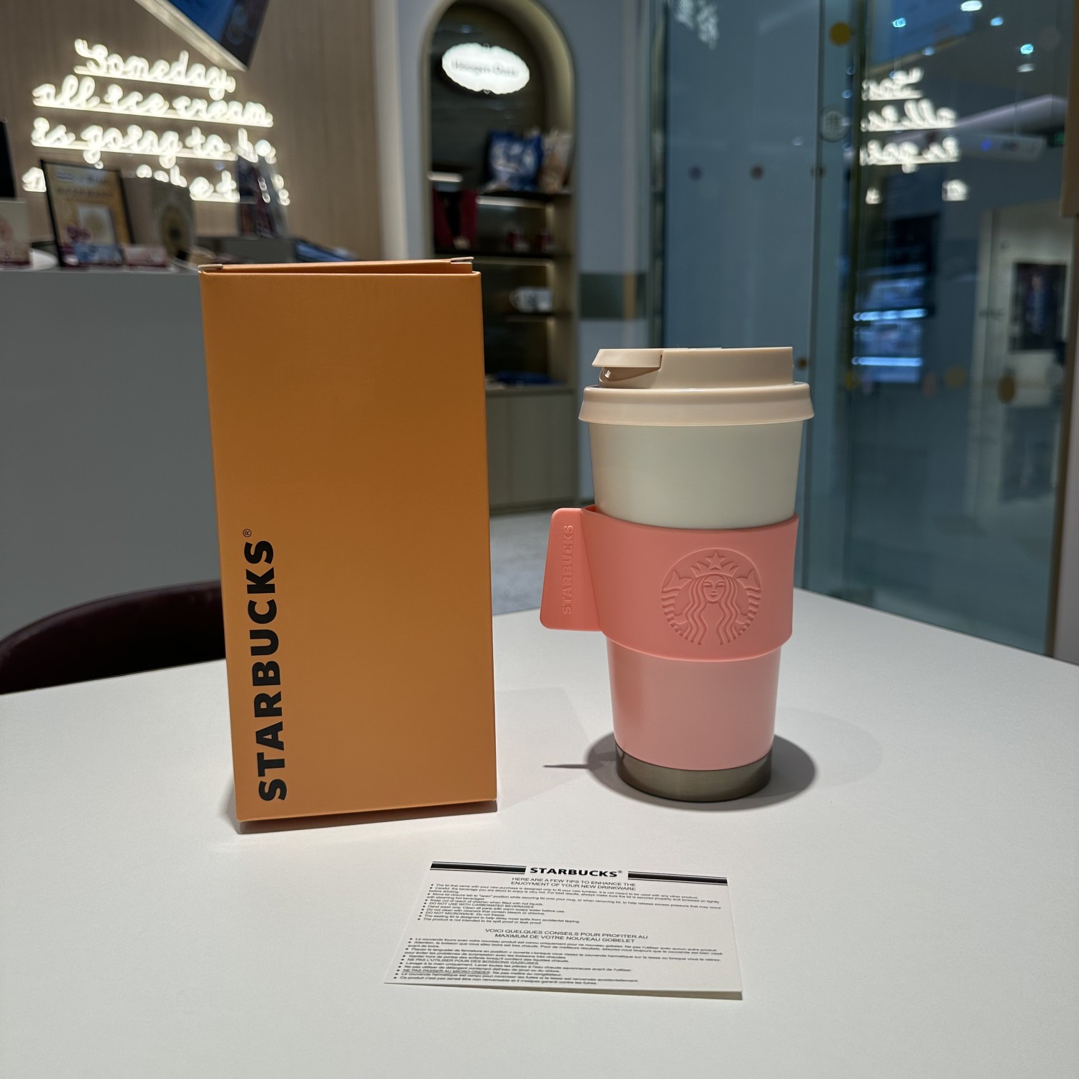 粉白渐变+皮质杯套的组合