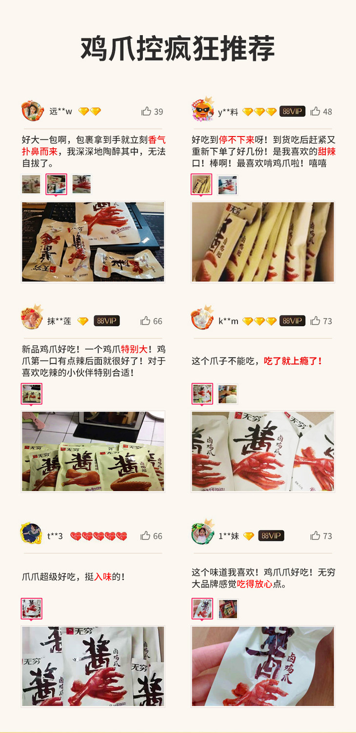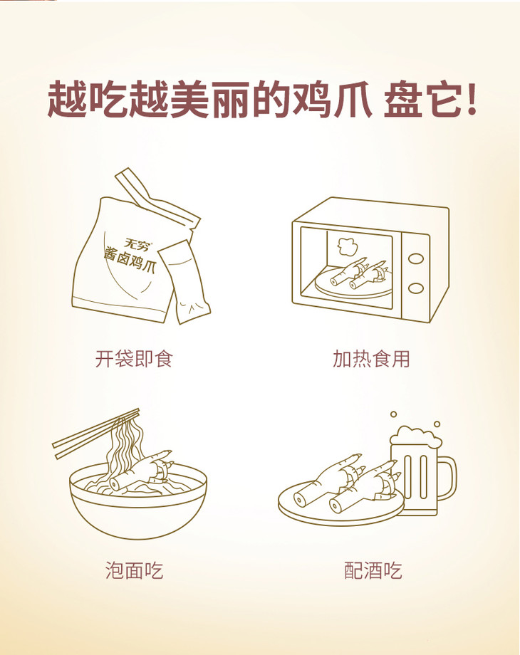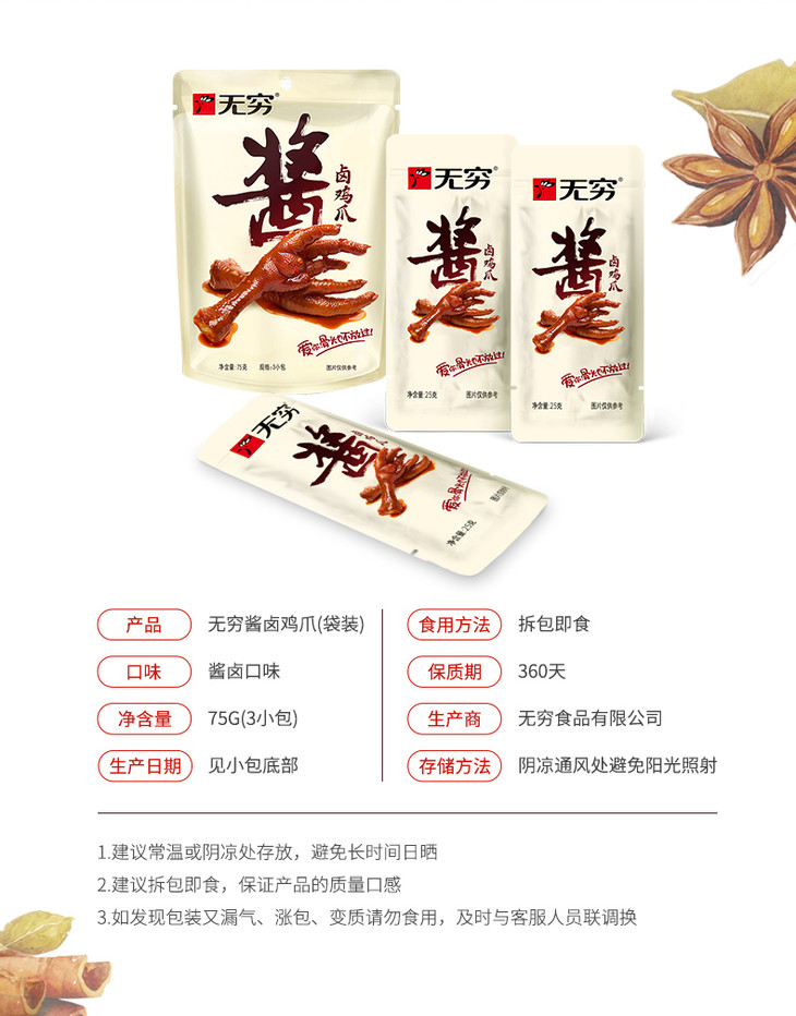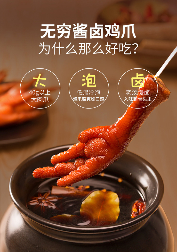75g无穷酱卤鸡爪 酱卤微辣 卤香大肉爪 满满胶原蛋