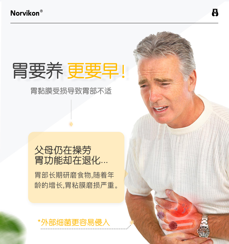 【养胃】美国诺维肯胃康片保养胃粘膜舒缓胃酸胃炎胃痛恢复胃动力调节肠道菌群告别口臭
