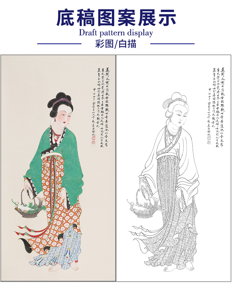 俞致贞人物工笔画白描底稿《鱼篮观音》临摹勾线高清打印稿ZZ44