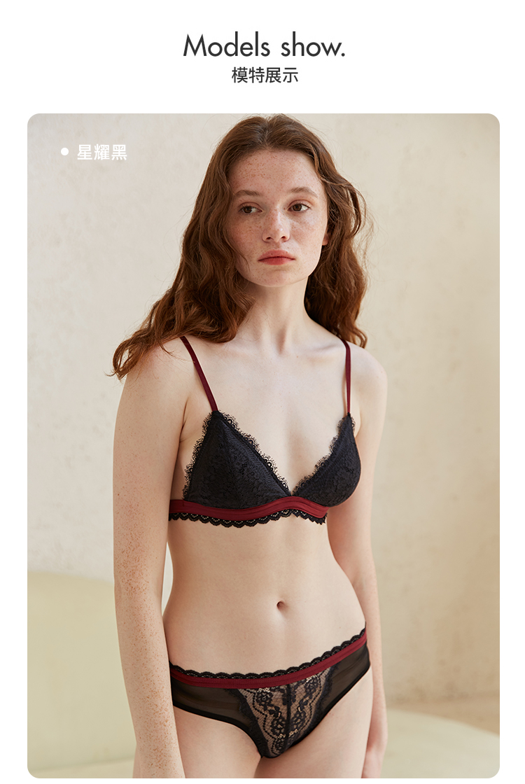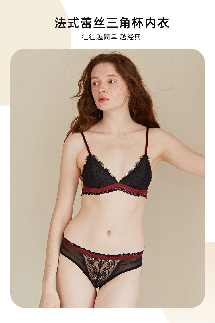 弗利少女法式蕾丝内衣女薄款无钢圈 性感文胸美背三角杯小胸胸罩