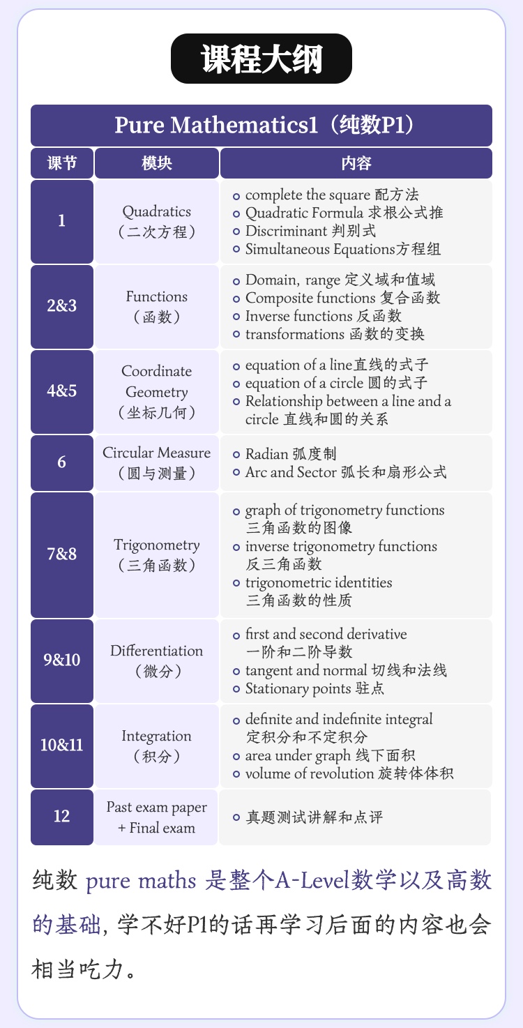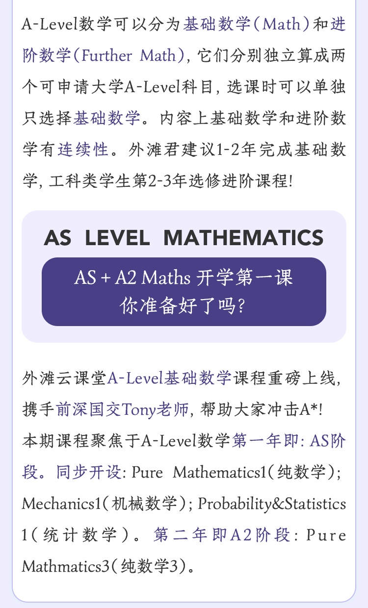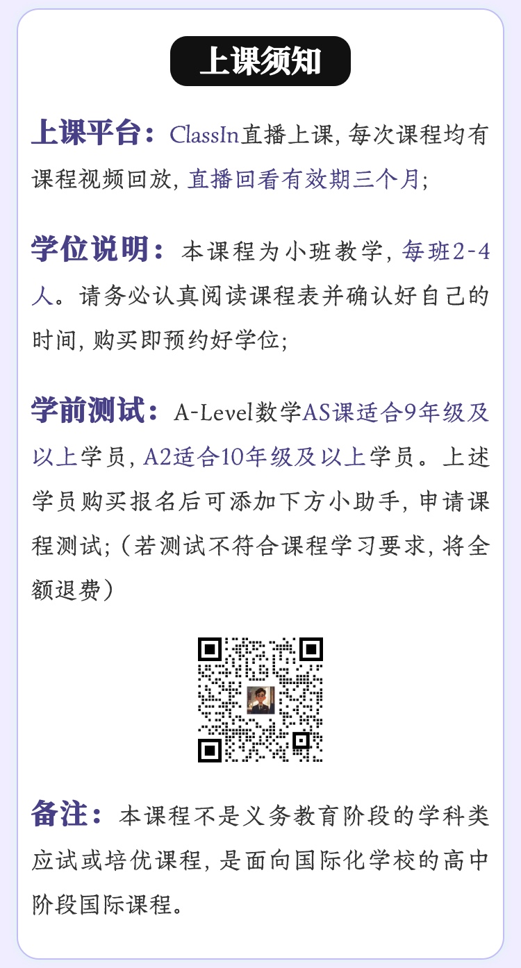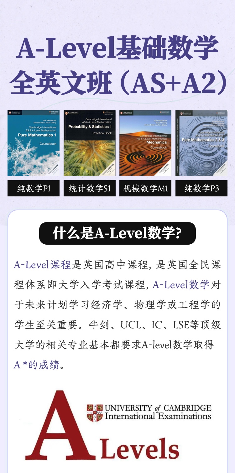 2026年 暑假班 A-Level数学全英文班(AS+A2)