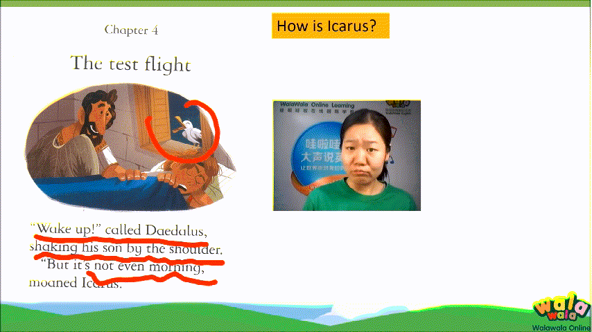 这样的根据书本内容的启发式提问,而非单纯的翻译灌输意思,让孩子能够学习到拆解长难句的方法,在以后进行自己阅读的时候,也能运用。