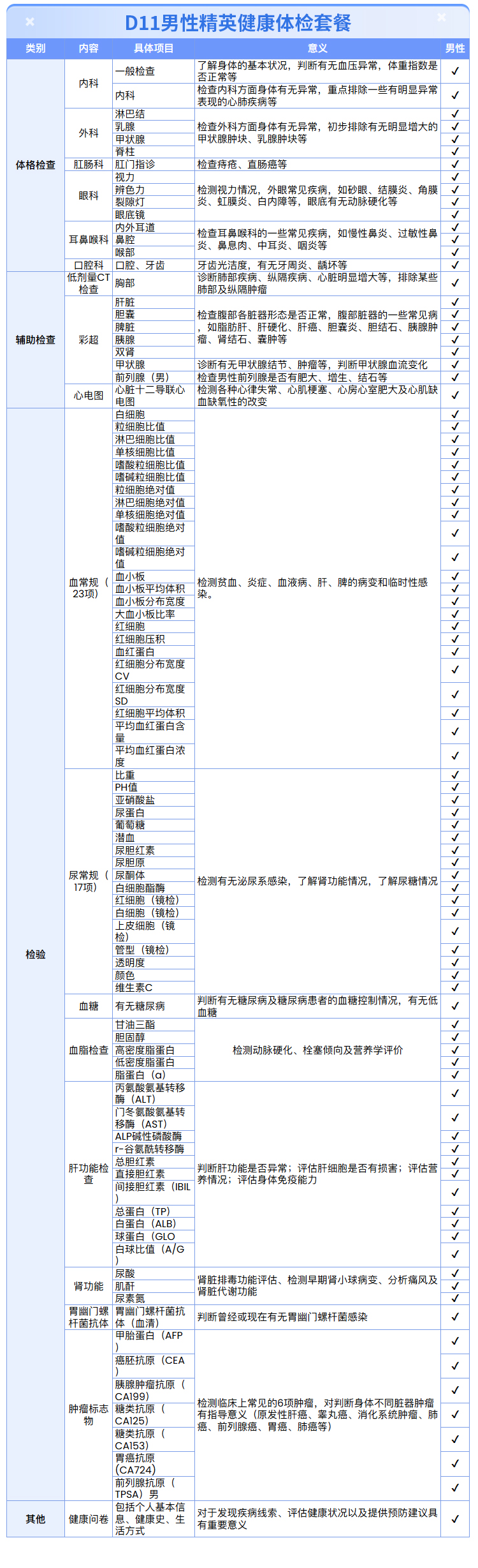 【男性 | 精英健康优选】含低剂CT+前列腺/甲状腺彩超+肝肾功能+六项肿瘤标志物 D11