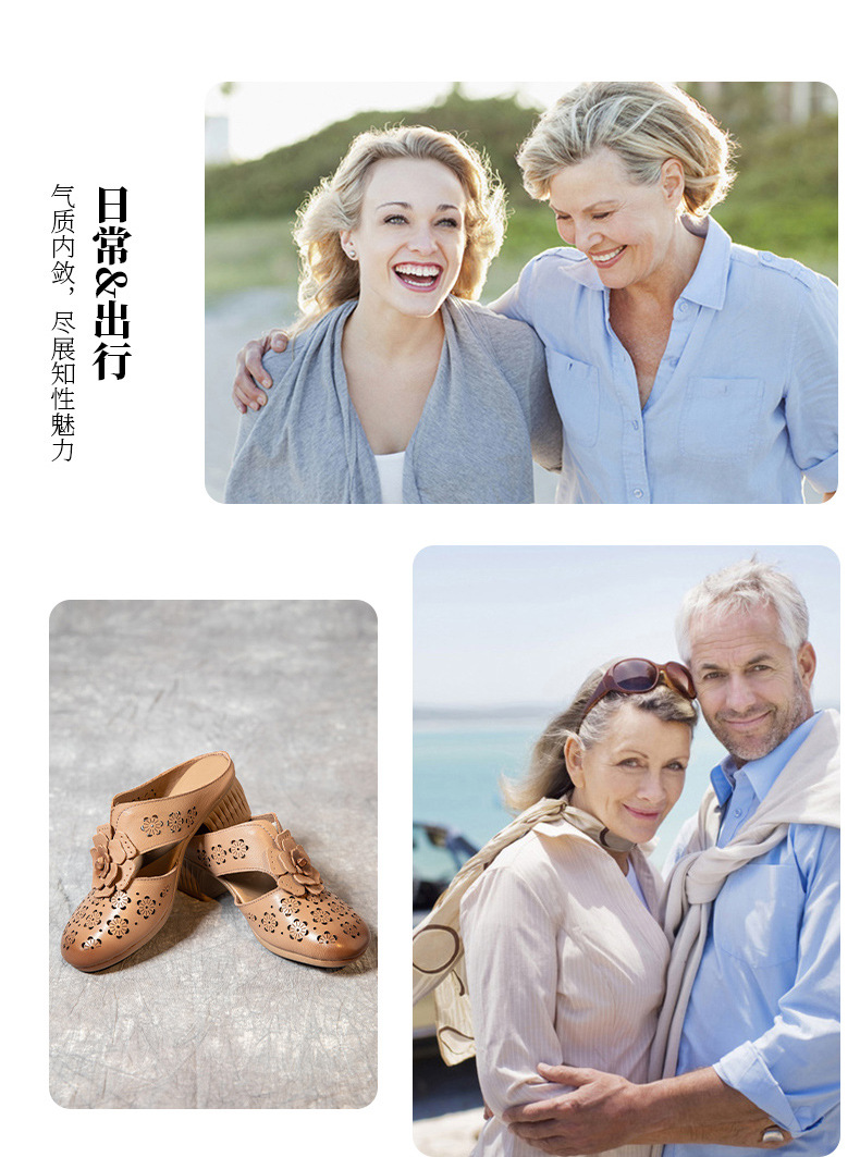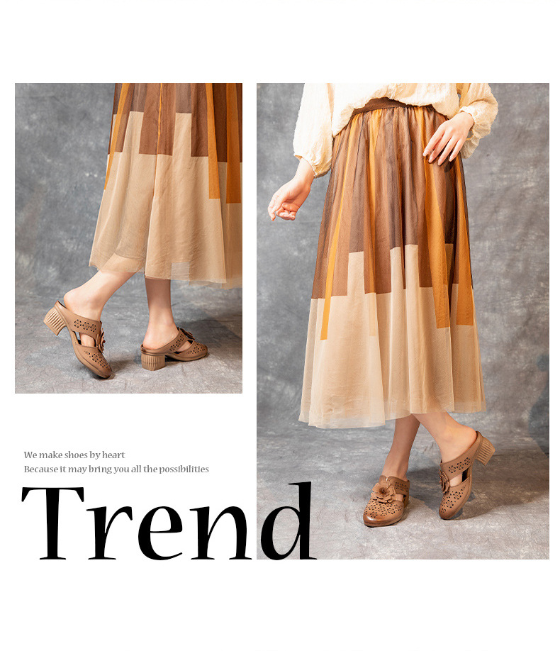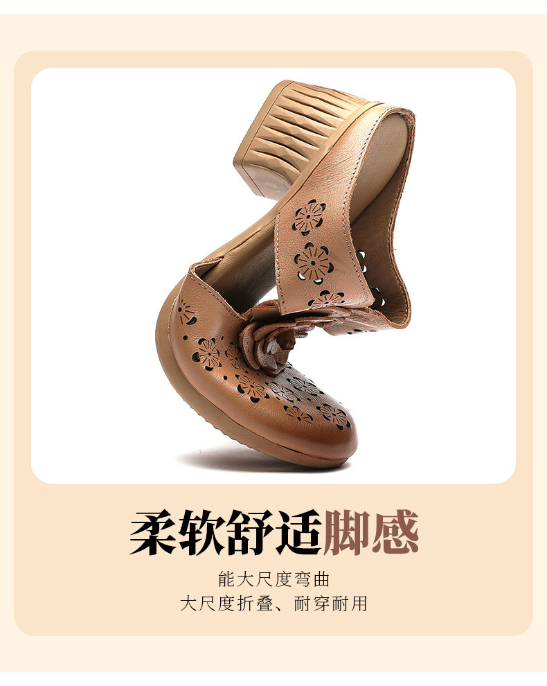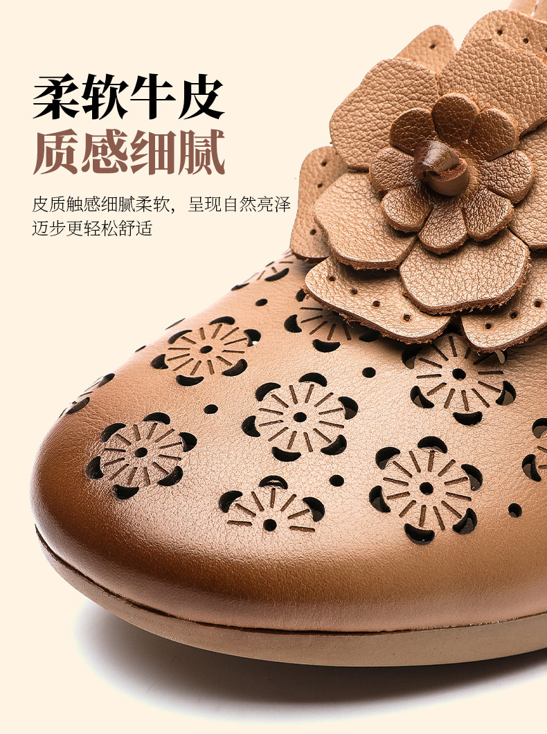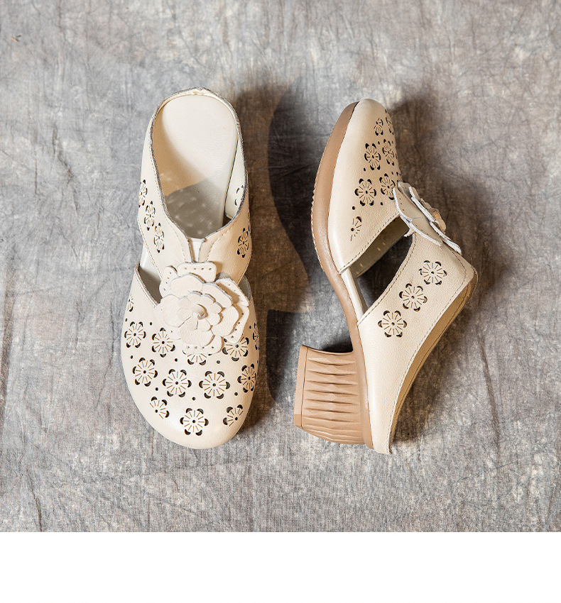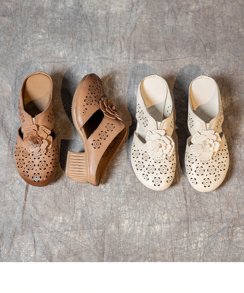 MLD-9917民族风粗高跟包头凉拖女夏牛皮镂空中年凉鞋舒适花朵拖鞋