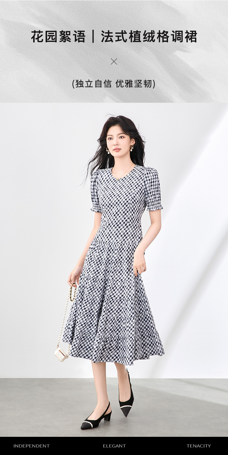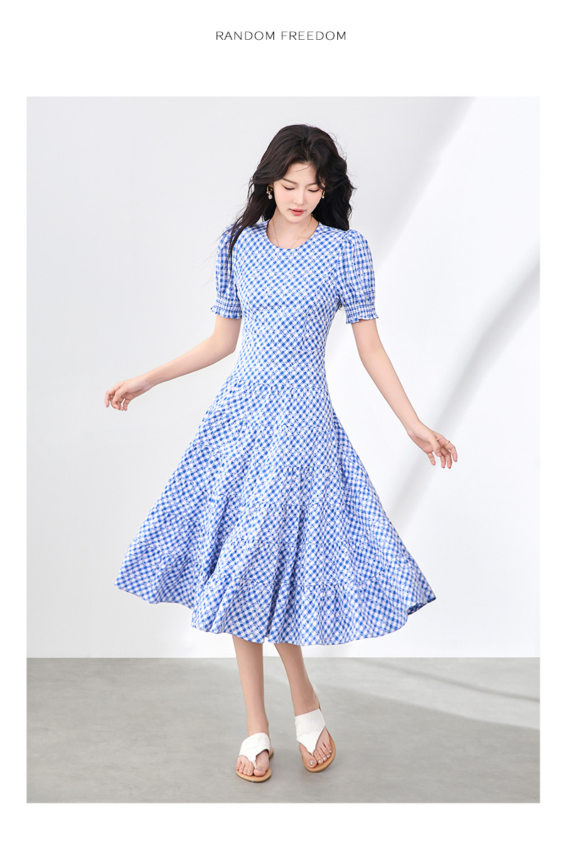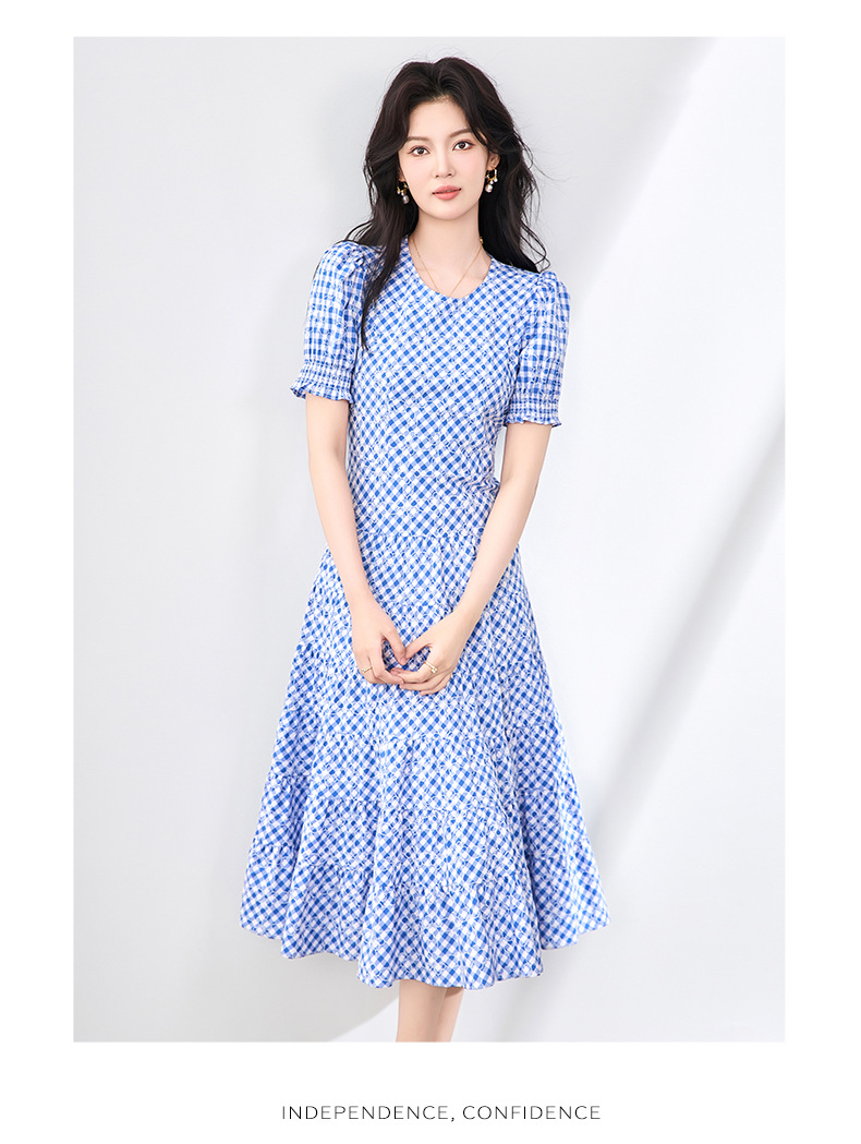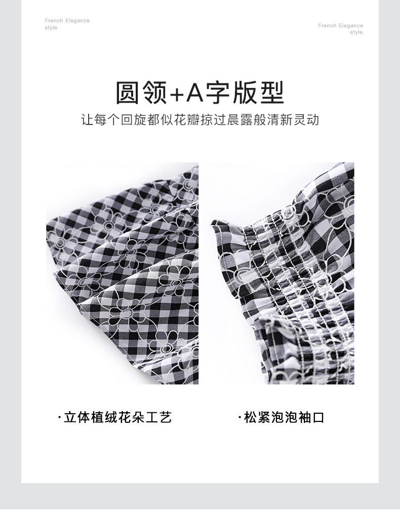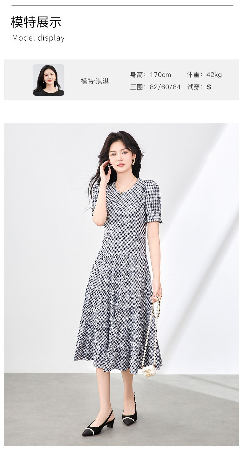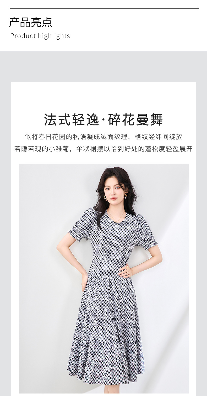 「高货wl」全新升级【铂金会员330/天猫439/差价109】(35653)洛诗琳设计感植绒格纹连衣裙2025夏季法式清新减龄大摆裙
