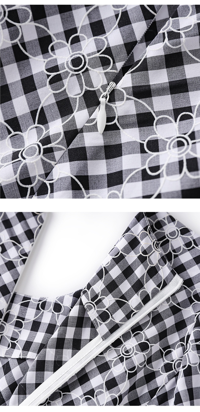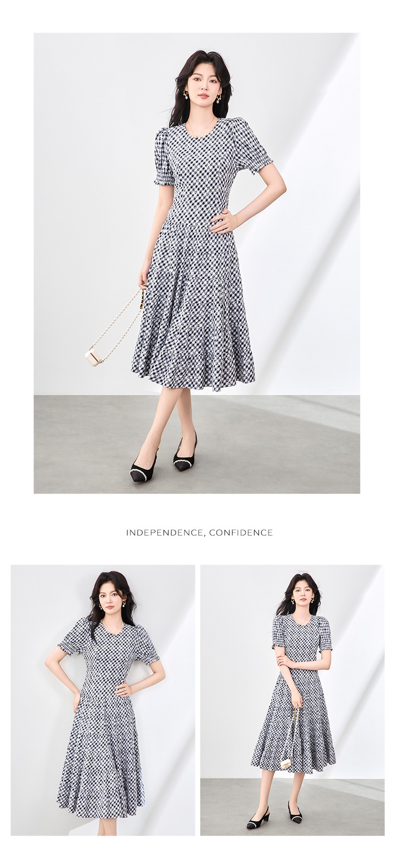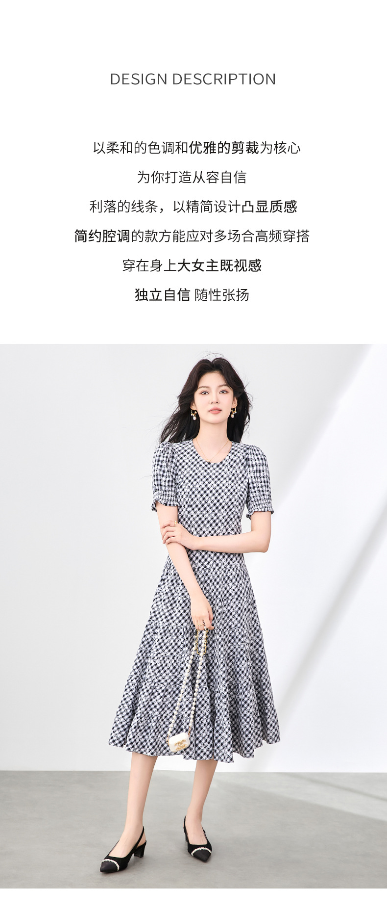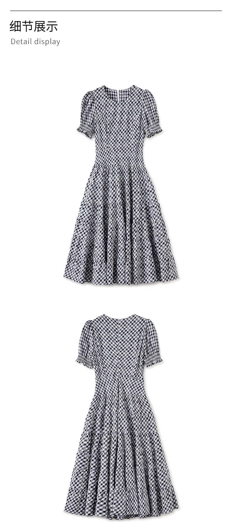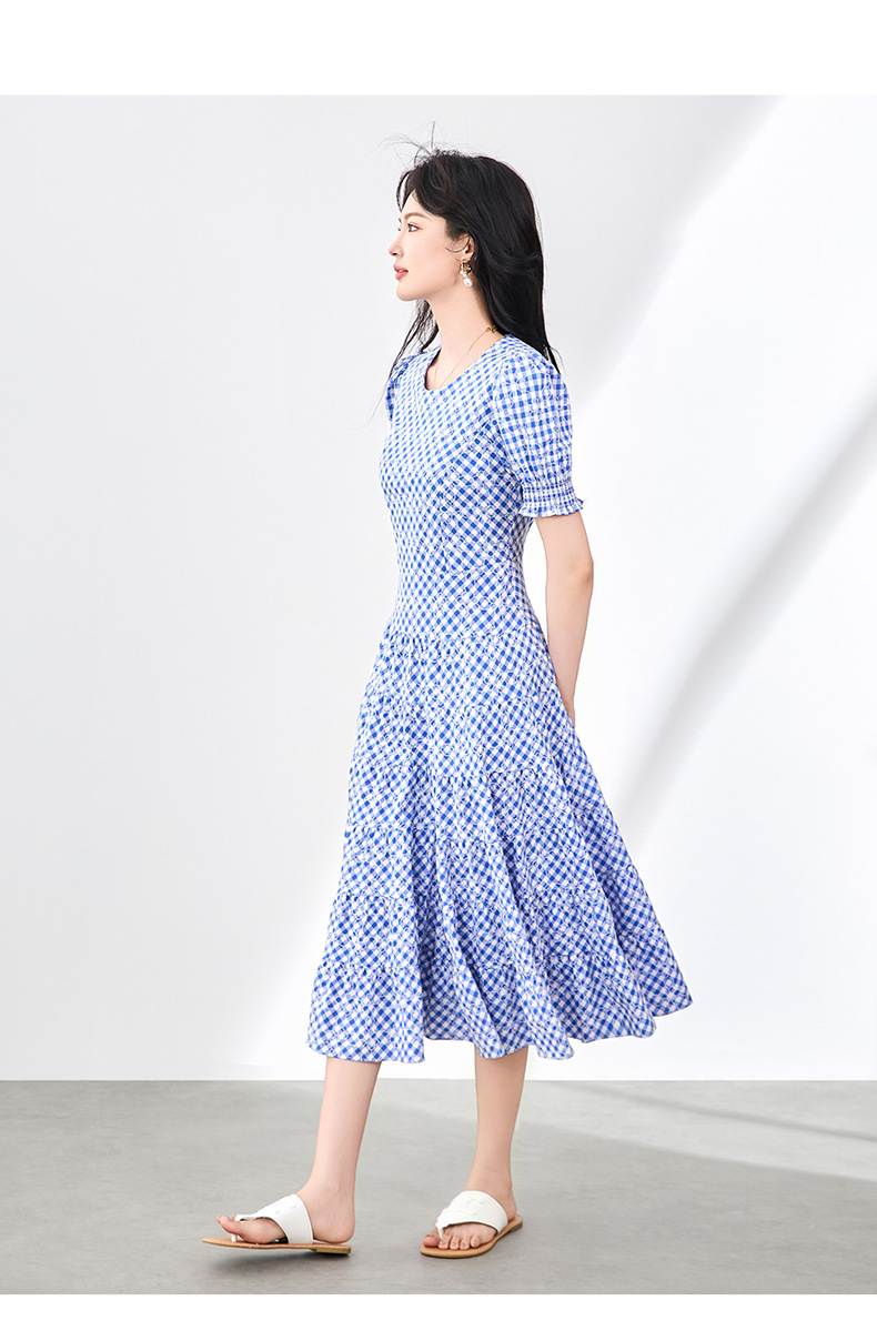 「高货wl」全新升级【铂金会员330/天猫439/差价109】(35653)洛诗琳设计感植绒格纹连衣裙2025夏季法式清新减龄大摆裙