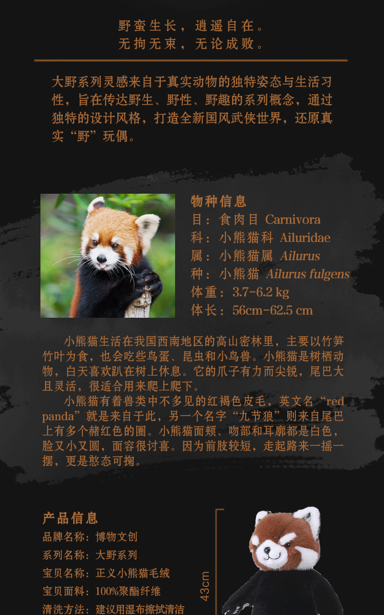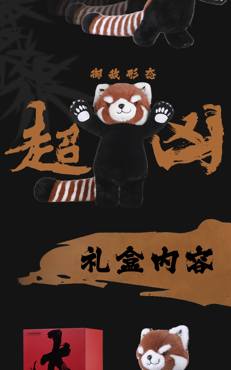 博物文创 大野系列 正义小熊猫 佛系大熊猫 毛绒玩偶公仔