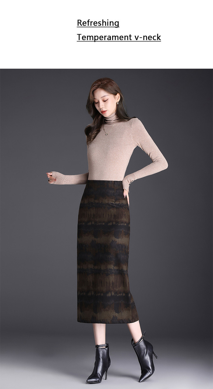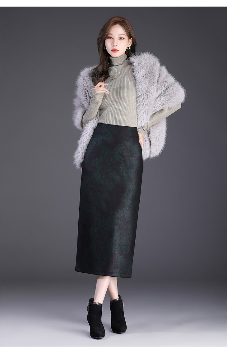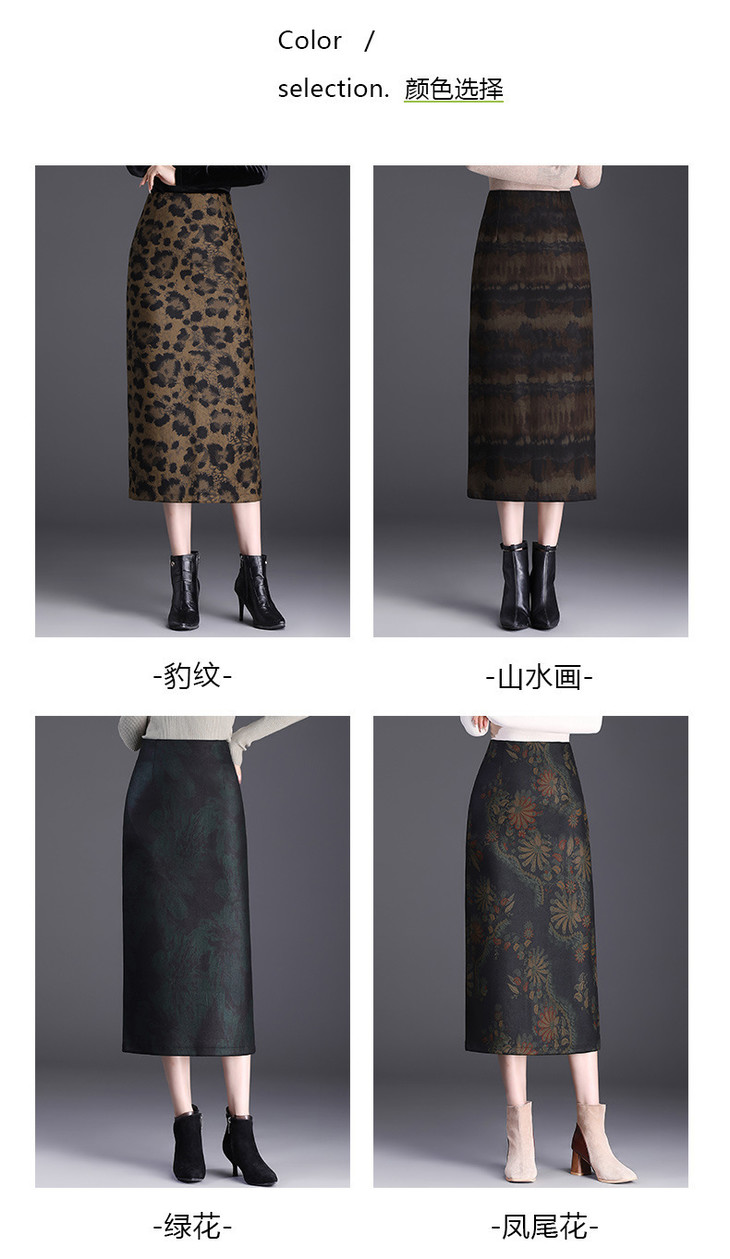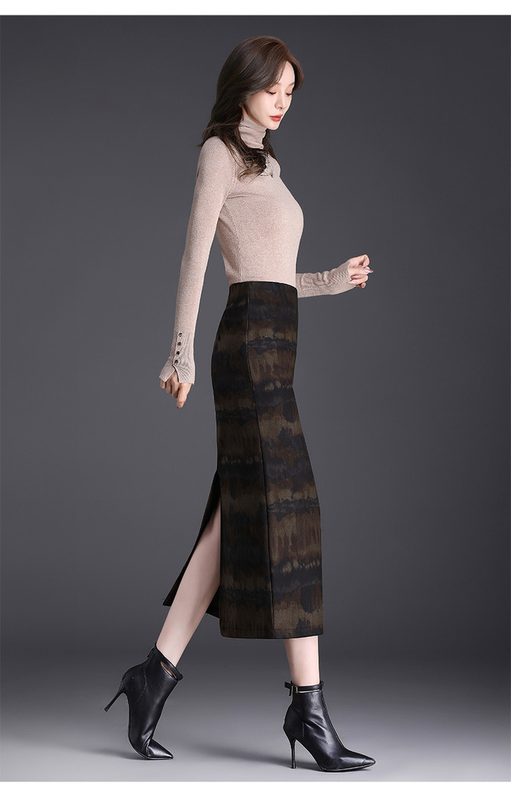 韩版后开叉毛呢直筒半身裙职业包臀裙6878