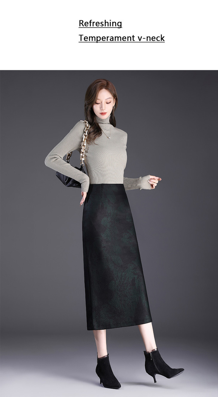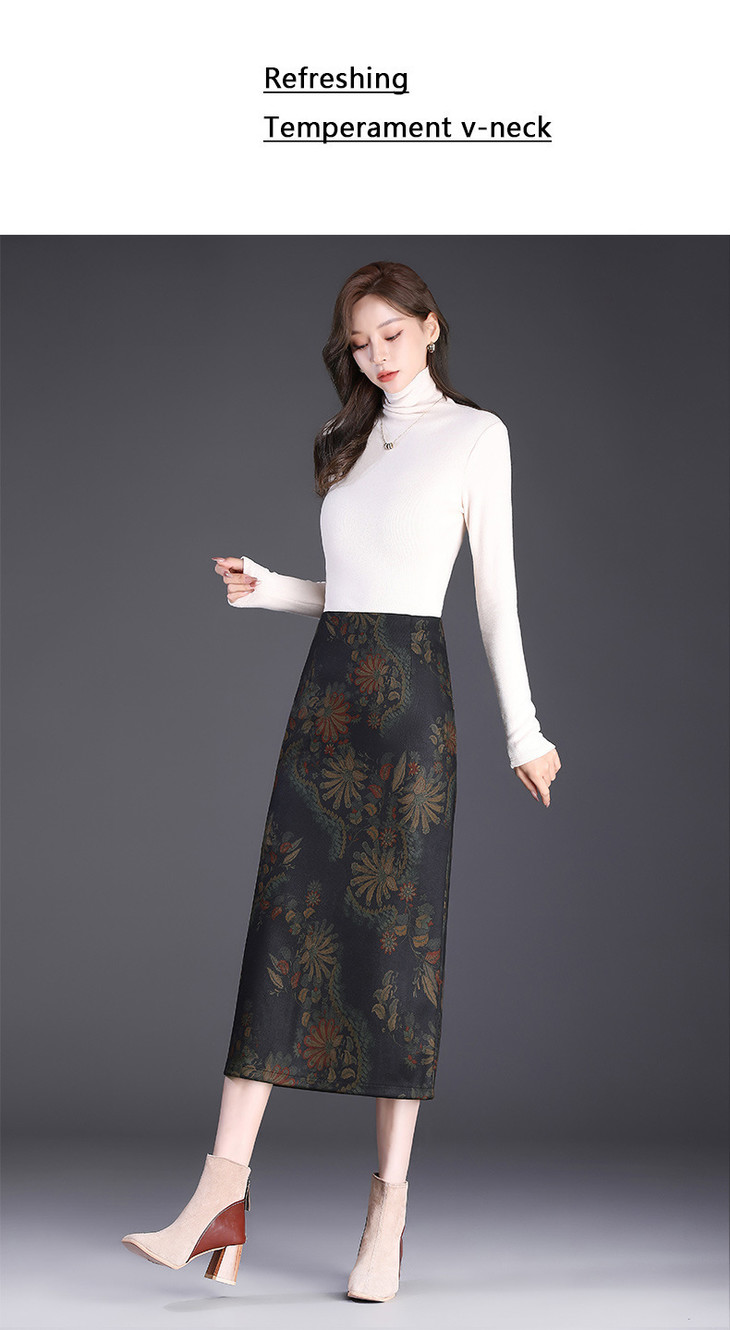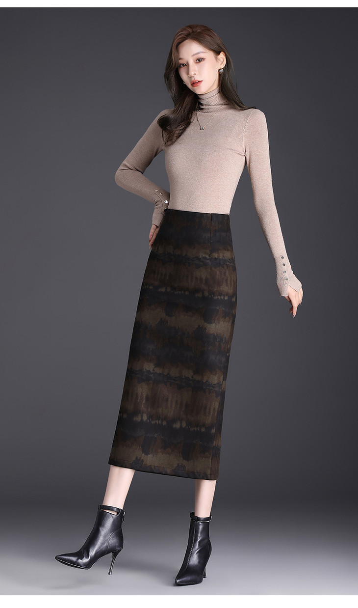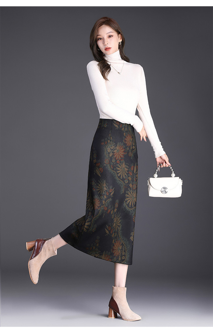 韩版后开叉毛呢直筒半身裙职业包臀裙6878