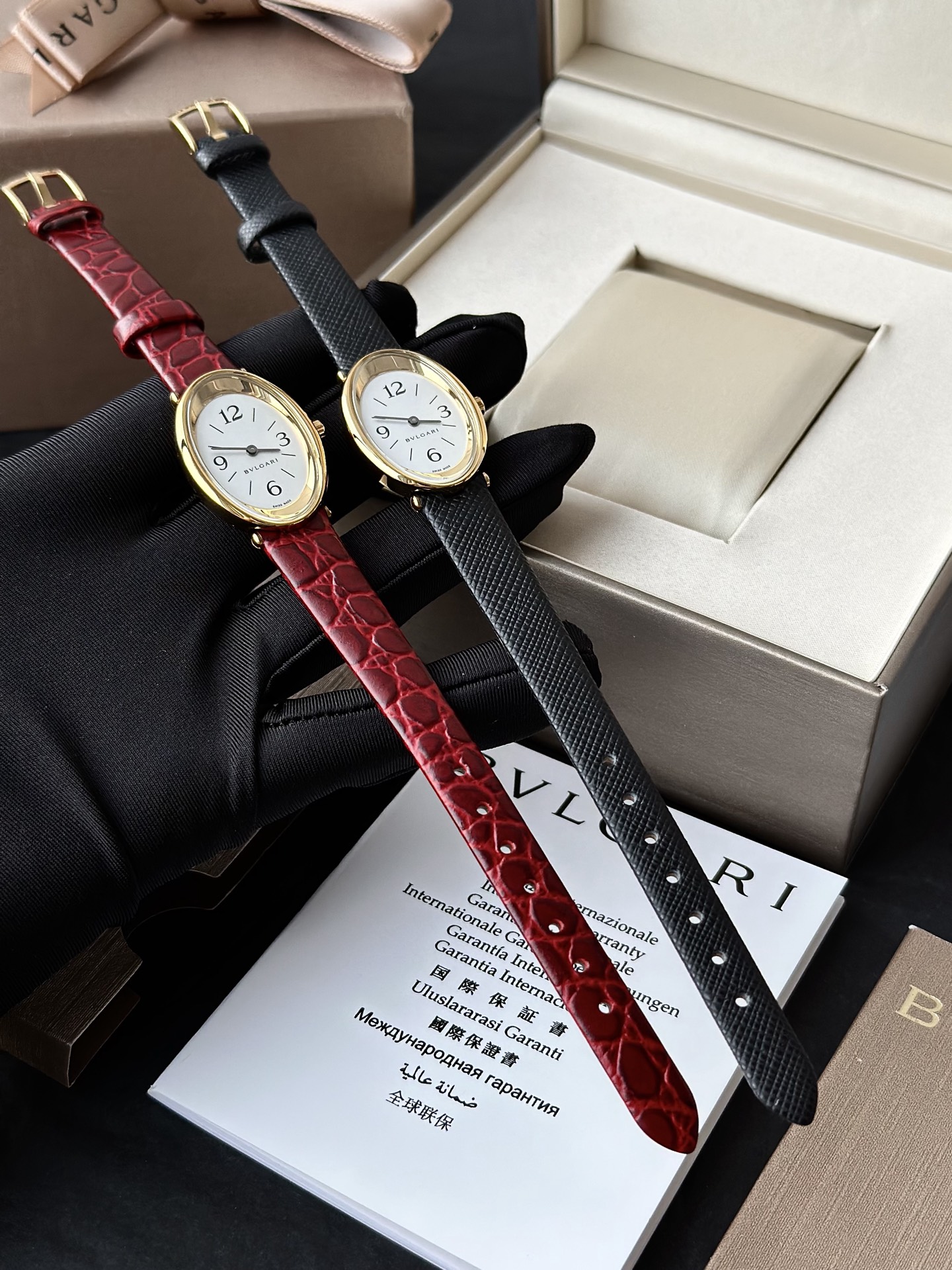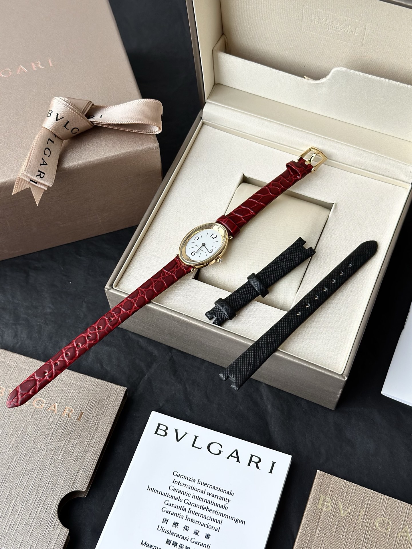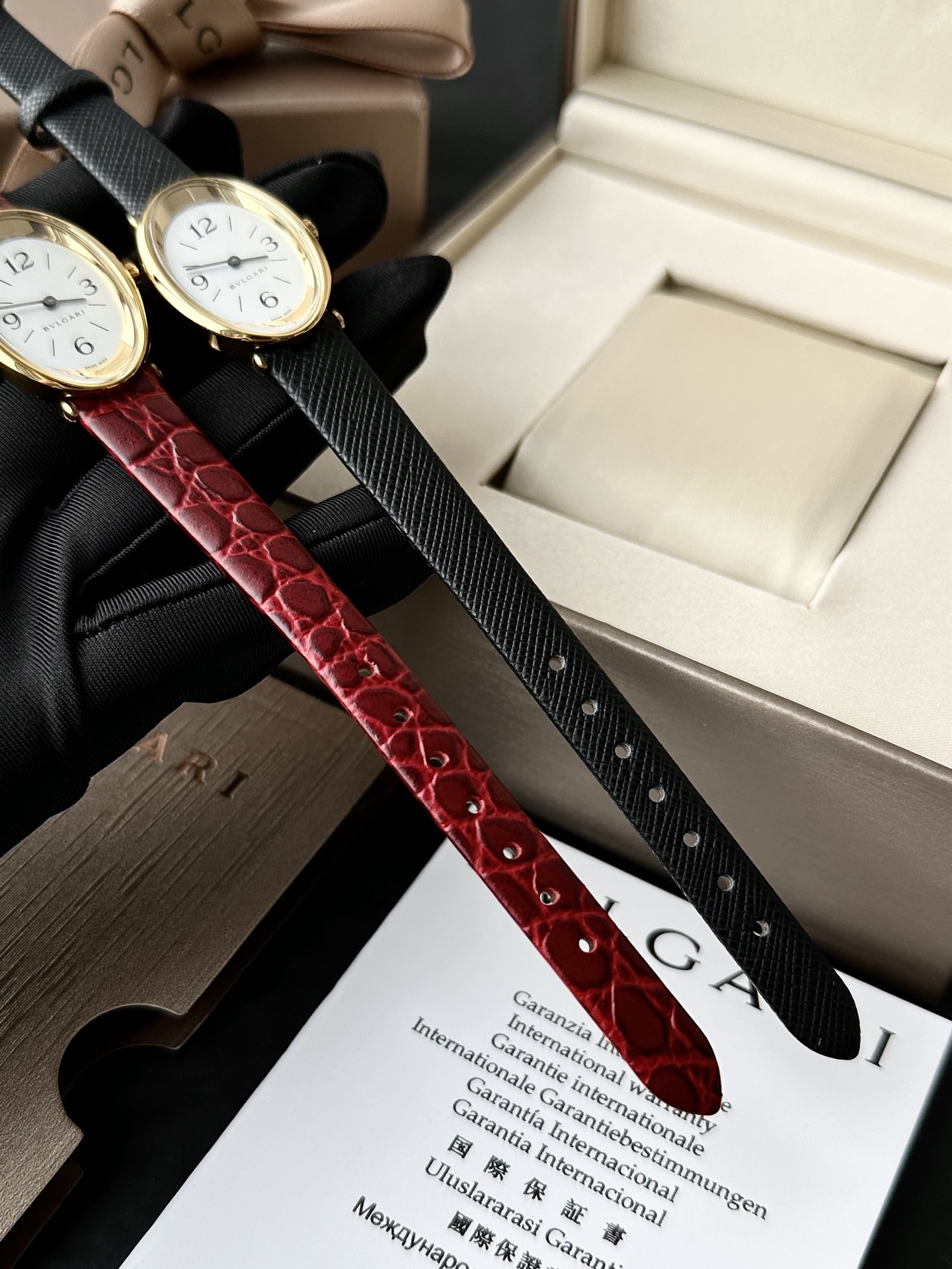 全套专柜礼盒赠送一副表带 颜色:黑色/红色 机芯:瑞士进口机芯,表带长度:220cm,表盘尺寸:23mm,表盘厚度:7mm,防水深度:30米