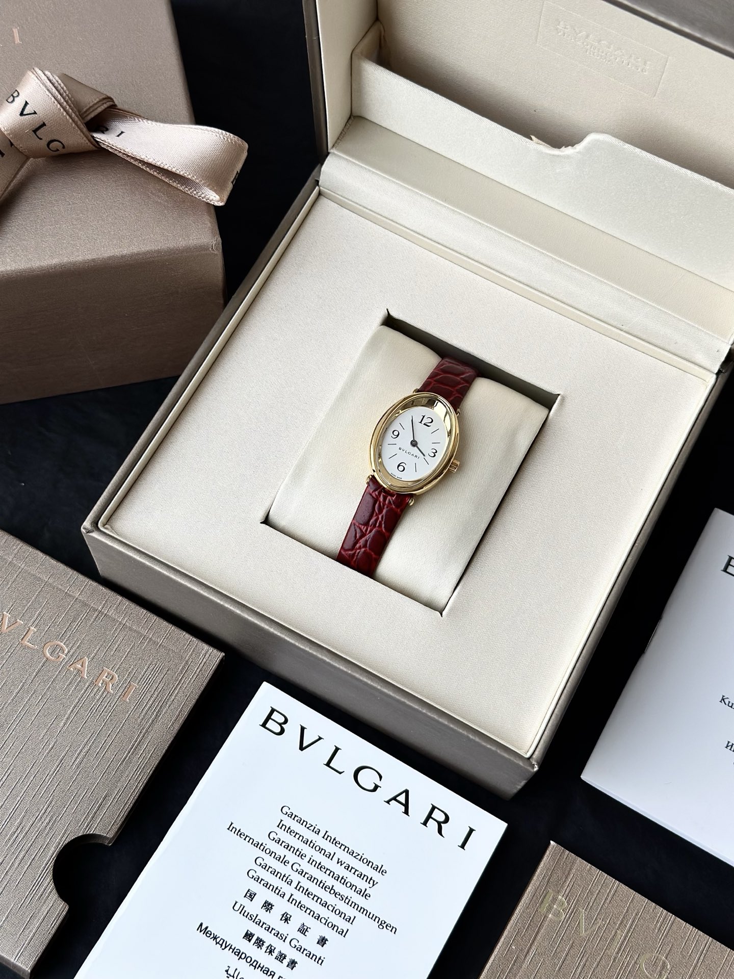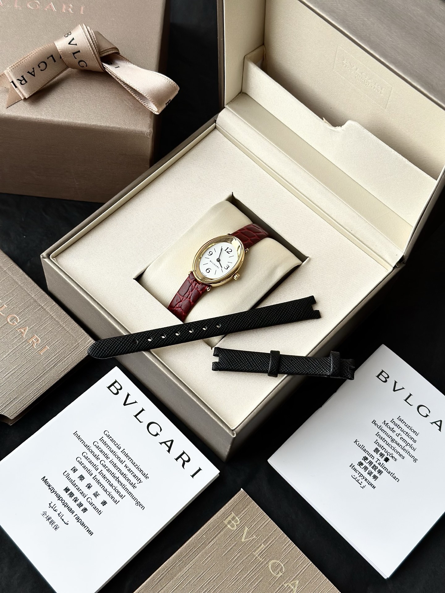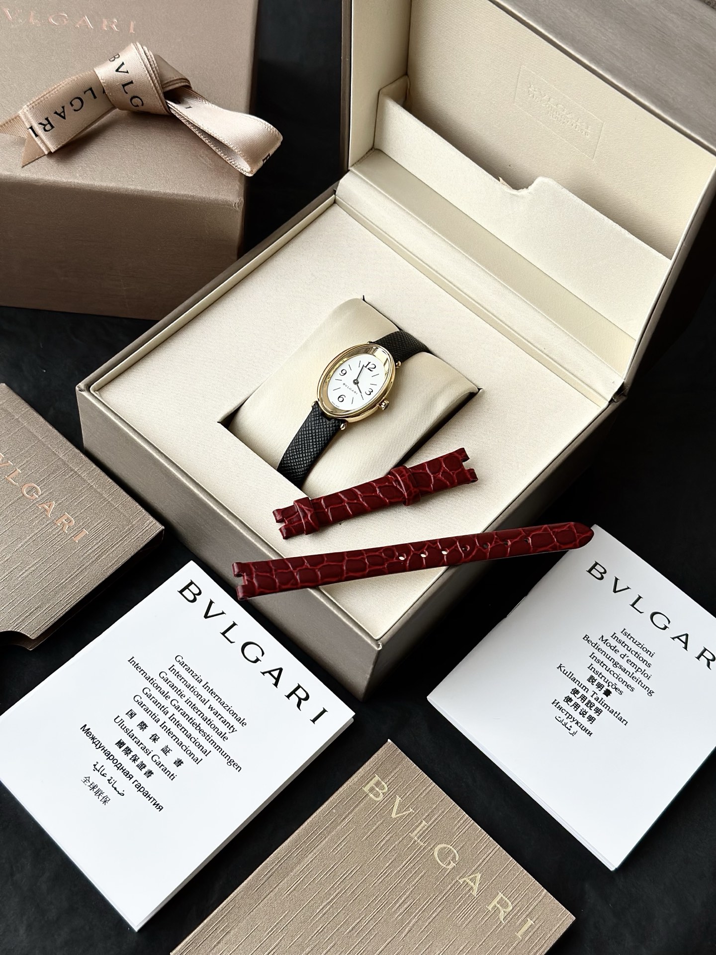 全套专柜礼盒赠送一副表带 颜色:黑色/红色 机芯:瑞士进口机芯,表带长度:220cm,表盘尺寸:23mm,表盘厚度:7mm,防水深度:30米