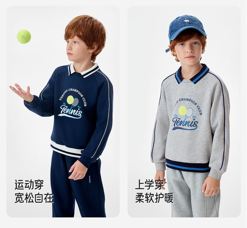 英氏儿童卫衣翻领男童秋冬保暖远红外舒适时尚男宝宝上衣潮流户外