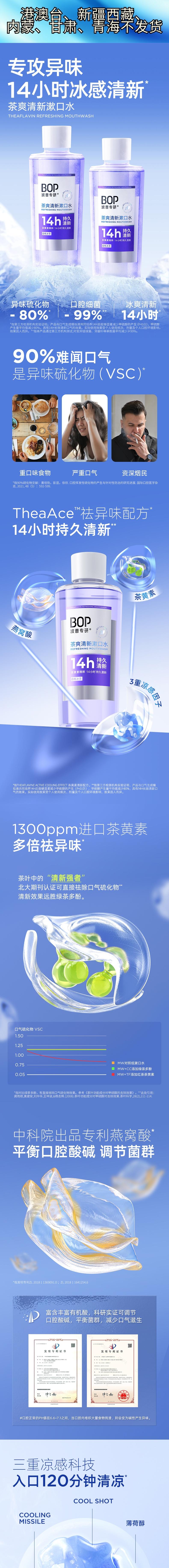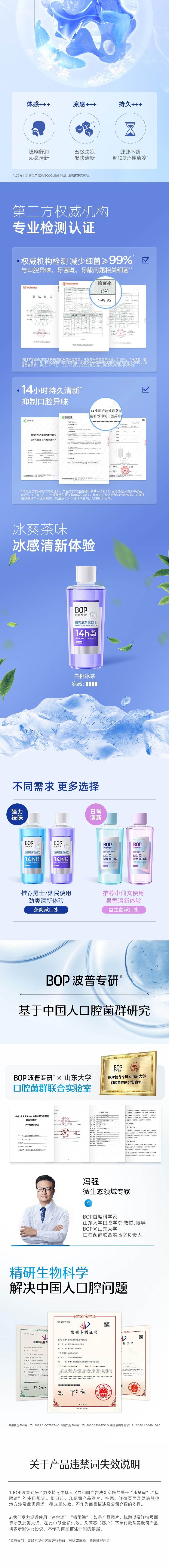BOP 波普专研茶爽清新漱口水白桃冰茶500ml 6972682693174