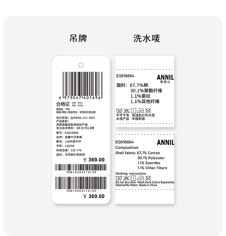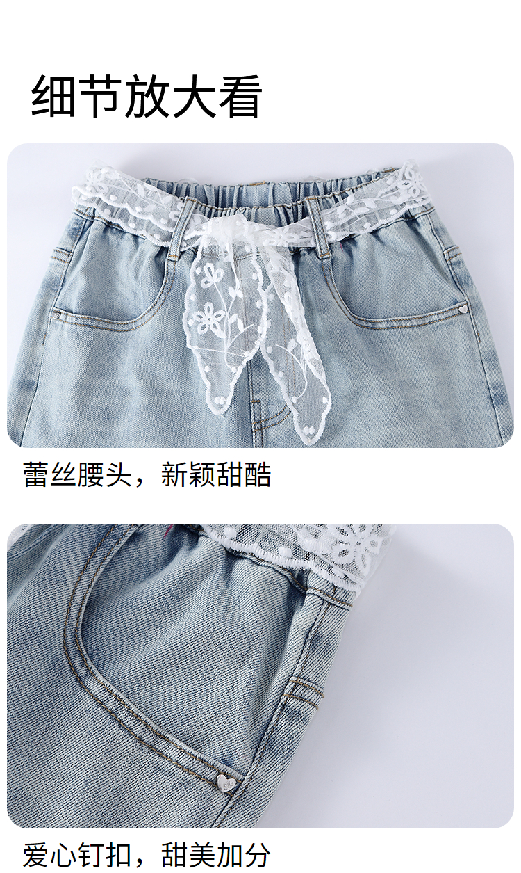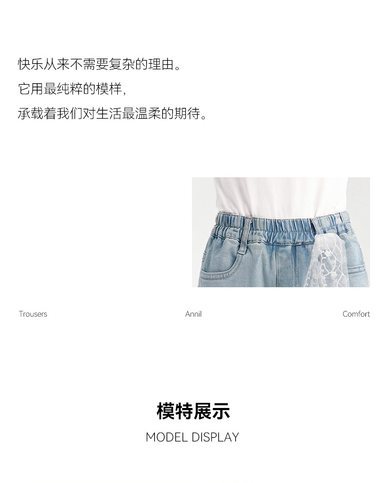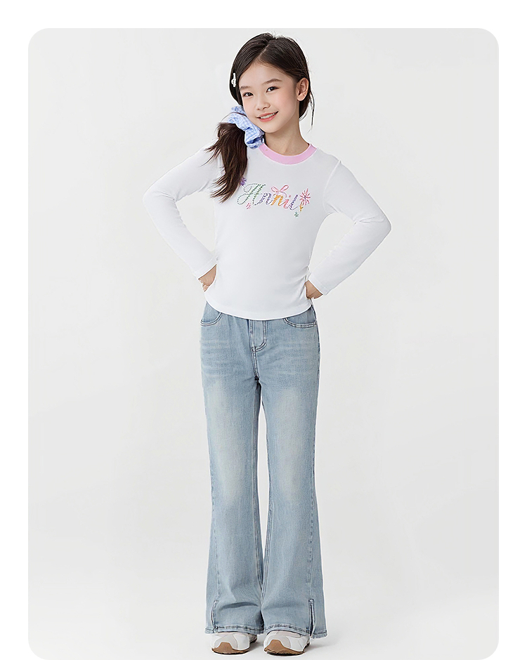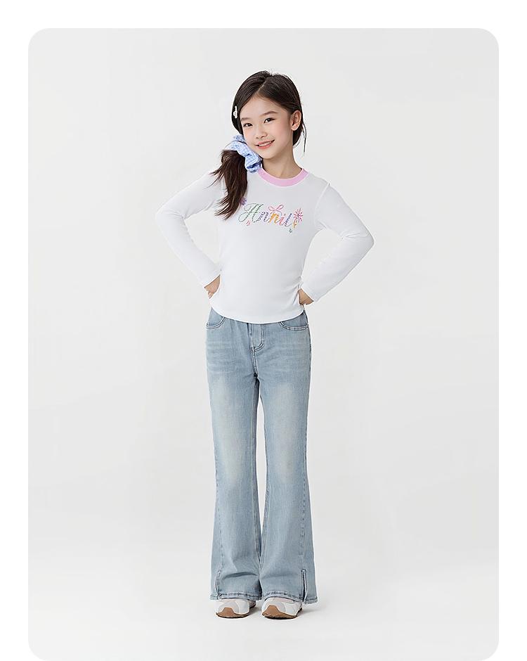 女童全腰牛仔单裤春季新款安奈儿童装EG616664