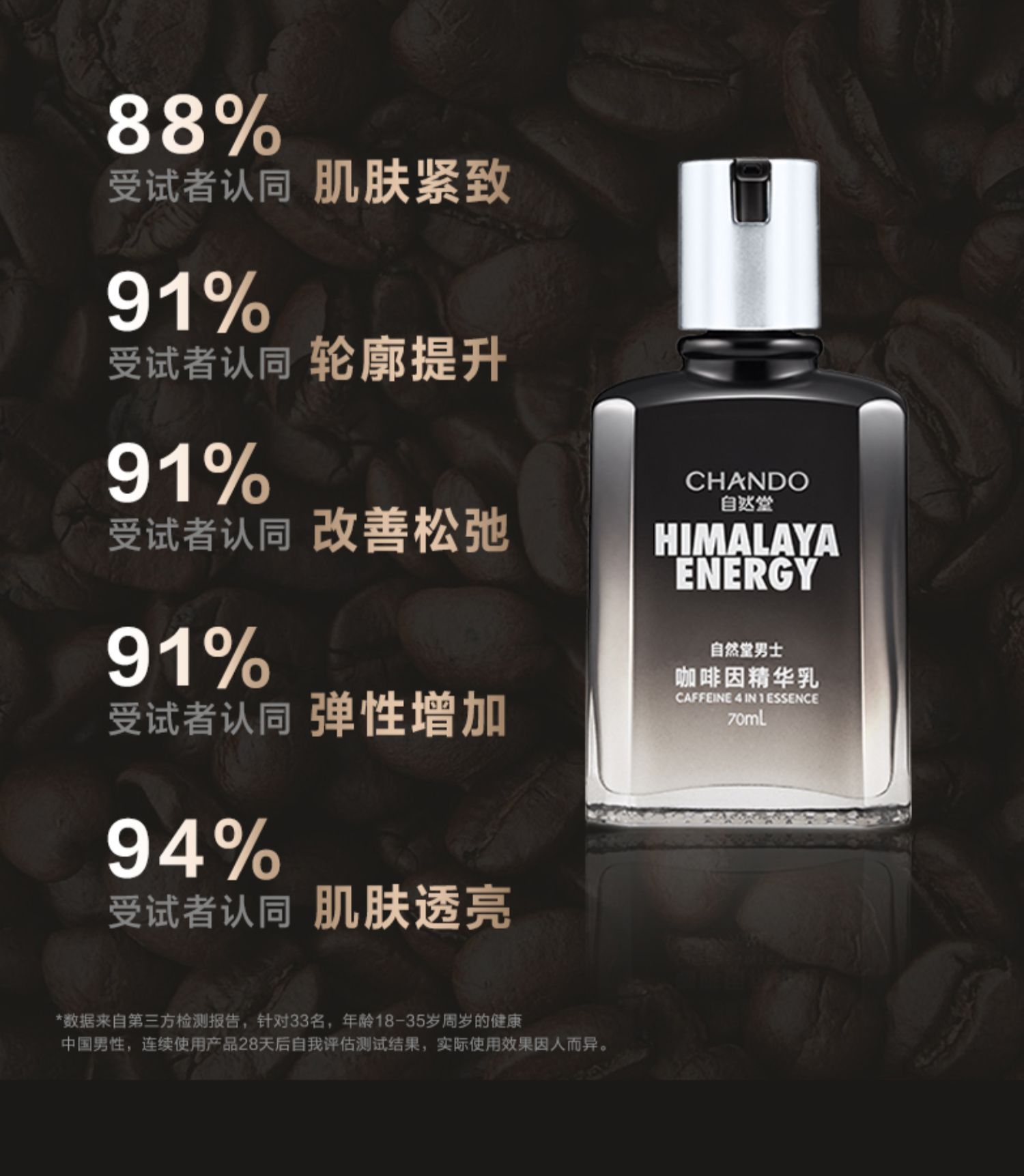 【每满200-40】自然堂男士咖啡因紧致精华乳